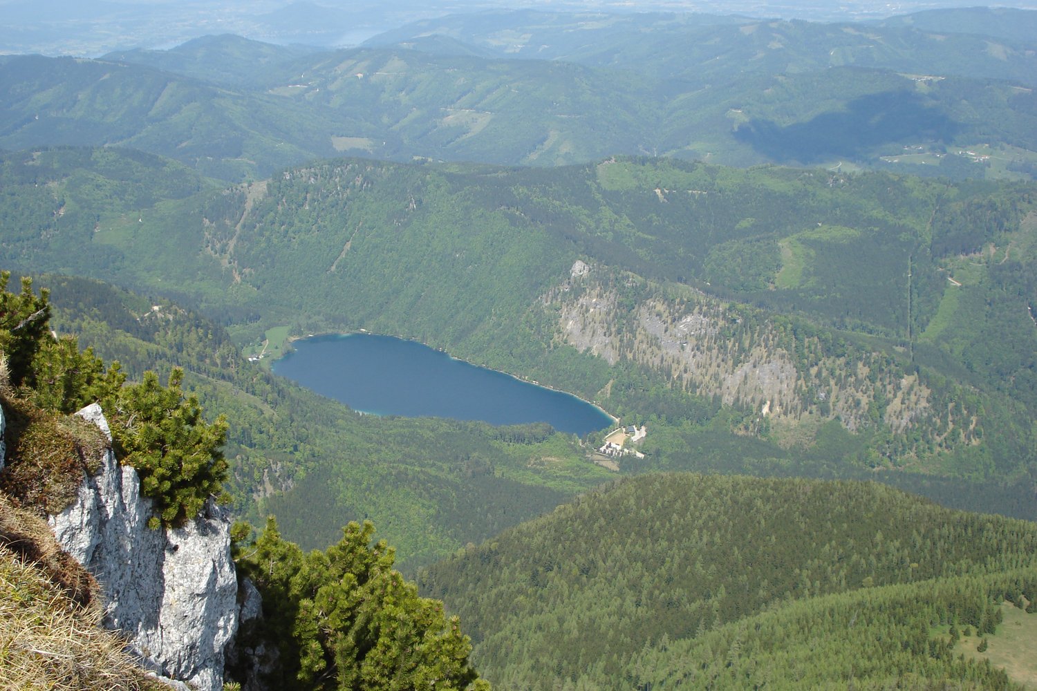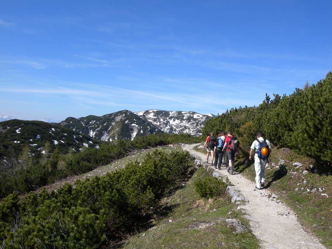 Vom Gipfel auf dem Wanderweg zurück zur Bergstation der Feuerkogel-Seilbahn.