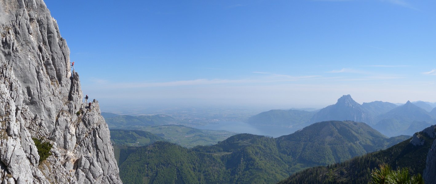 Auf dem Plateau des Höllengebirges, in der Nähe der Feuerkogel-Seilbahn wurde an der Nordostkante des Alberfeldkogels ein Genussklettersteig errichtet. In Kombination mit der eindrucksvollen Plateaulandschaft, das in der Ferne aufblitzende Gletschereis des Dachsteins und dem stimmungsvollen Traunsee im Tal eine schöne Tour, die vor allem Ferrata Einsteiger anspricht. Klettersteigtechnisch bewegt sich alles im klassischen Bereich. Ohne besondere Actionabschnitte folgt der Steig dem luftigen Grat hinauf zum Europakreuz.