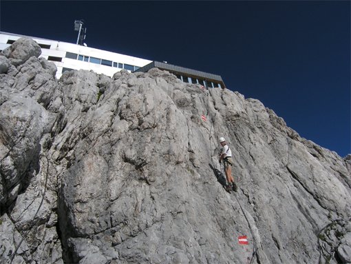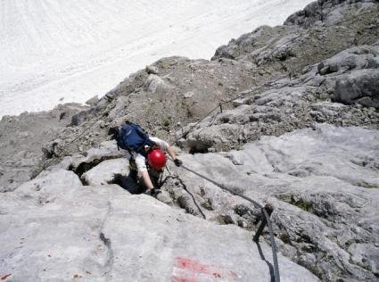 Kurzer aber recht knackiger Klettersteig, der den kürzesten Aufstieg von der Hunerscharte zur Bergstation darstellt. Wird auch im Abstieg gemacht.