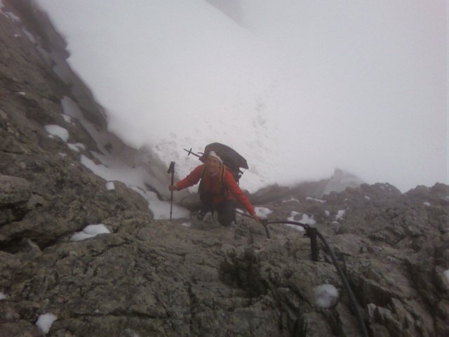 Achtung: Im Frühjahr kann auf dem Zustiegsweg bzw. auf Teilen des Klettersteiges noch Schnee liegen. Dann sind Pickel und Steigeisen mitzubringen, Bergerfahrung ist dann für eine Begehung nötig.