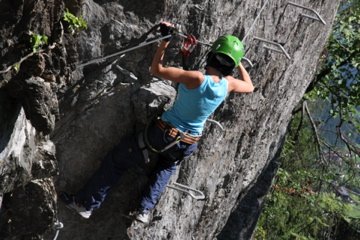 Lässt sich gut mit dem Zimmereben-Klettersteig kombinieren. Ein Notausstieg und Infopunkte an markanten Stellen des Klettersteiges sorgen für Sicherheit.