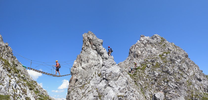 Der Klettersteig wurde generalsaniert. Auf stabiles Wetter achten, man bewegt sich überwiegend auf einem exponierten Grat!