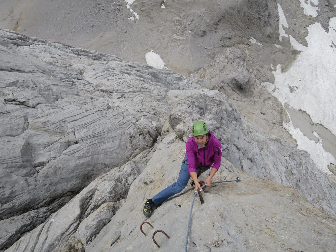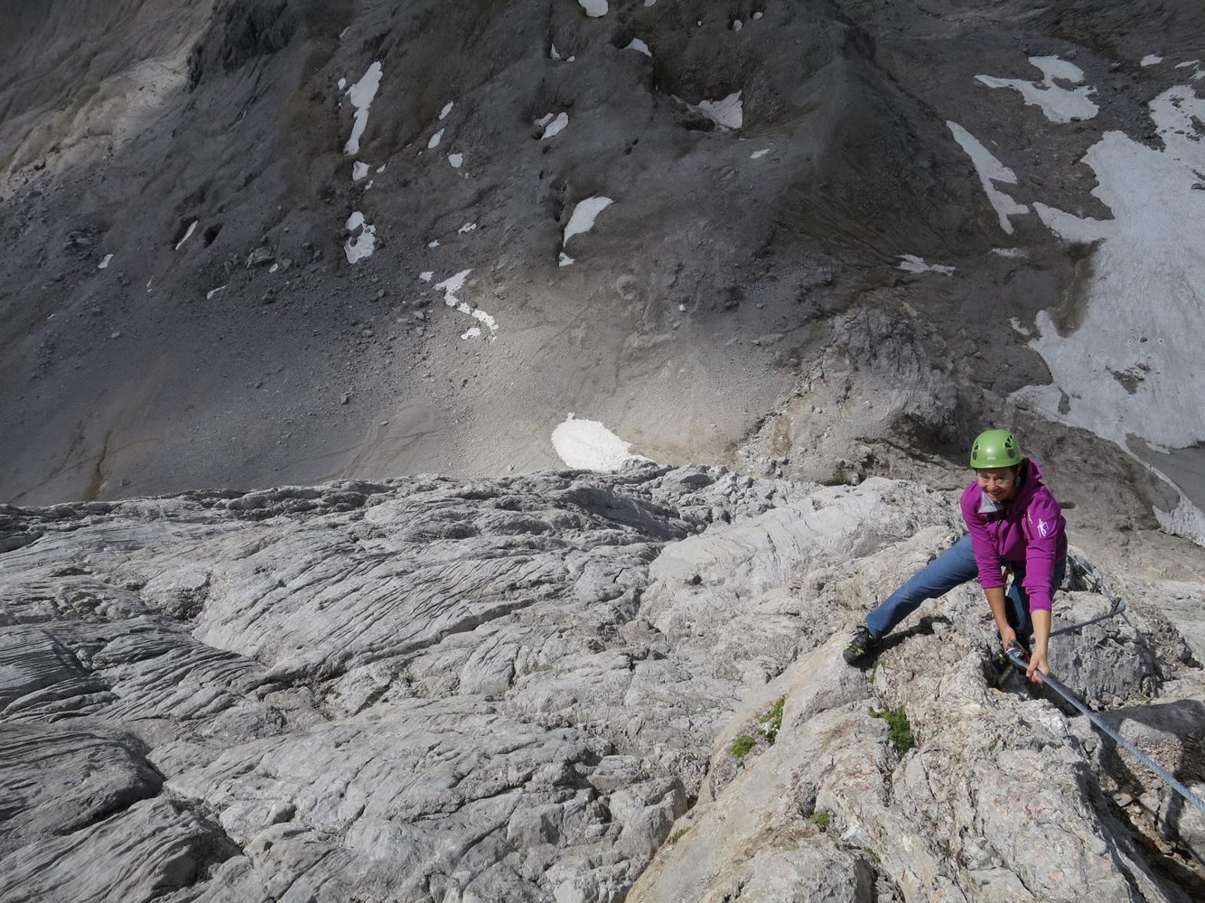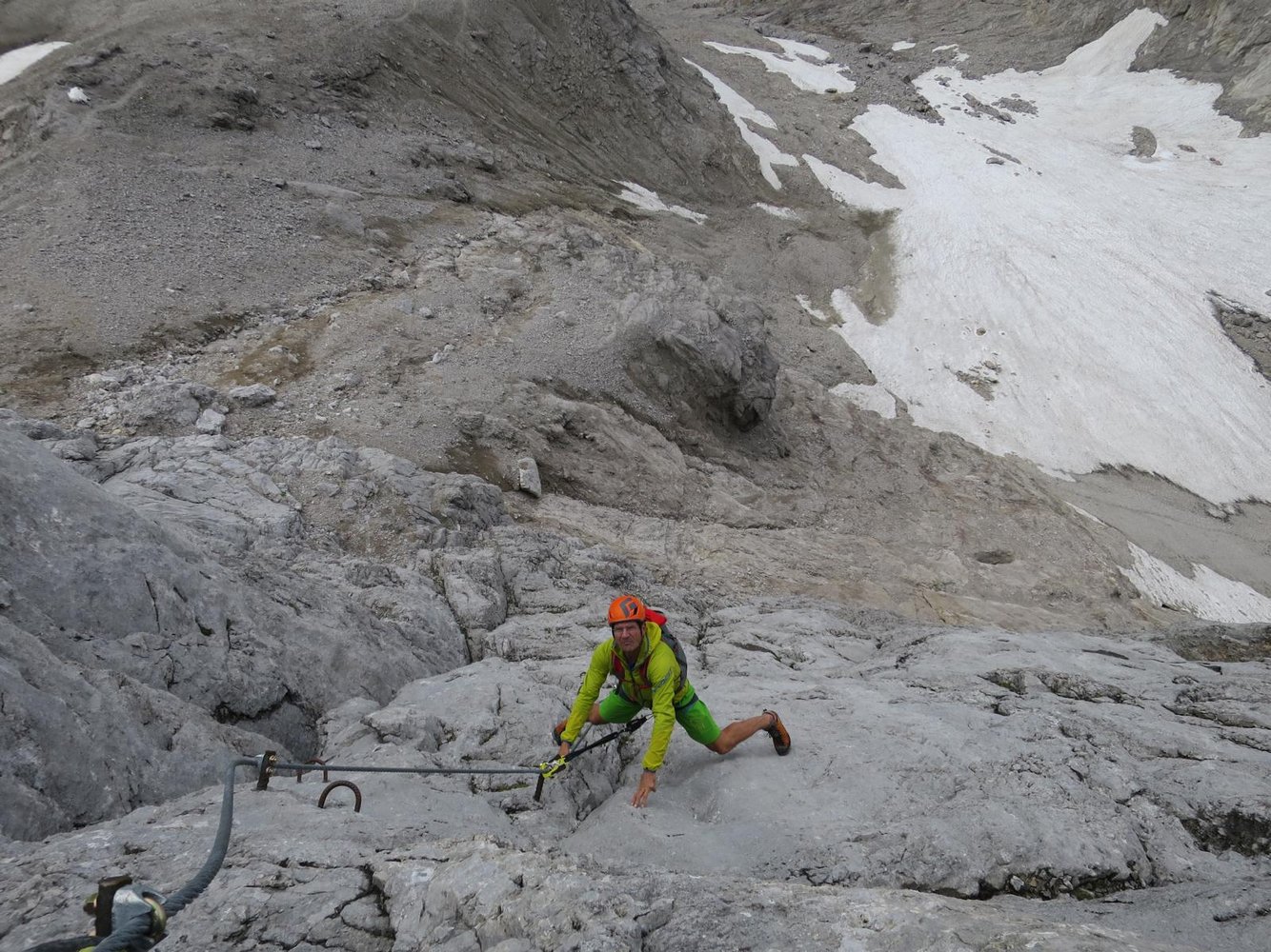 Das Ergebnis, ein klassischer Steig ohne wirkliche Höhepunkte, der gemeinsam mit dem ebenfalls gerinfügig verlegten Westgrat Klettersteig aber eine gute Klettersteigrunde bildet. Vom Gipfel des Koppenkarstein hat man einen perfekten Blick auf das touristische Treiben am Dachsteingletscher und bald merkt man, dass man als Klettersteiggeher längst selbst Teil davon geworden ist.