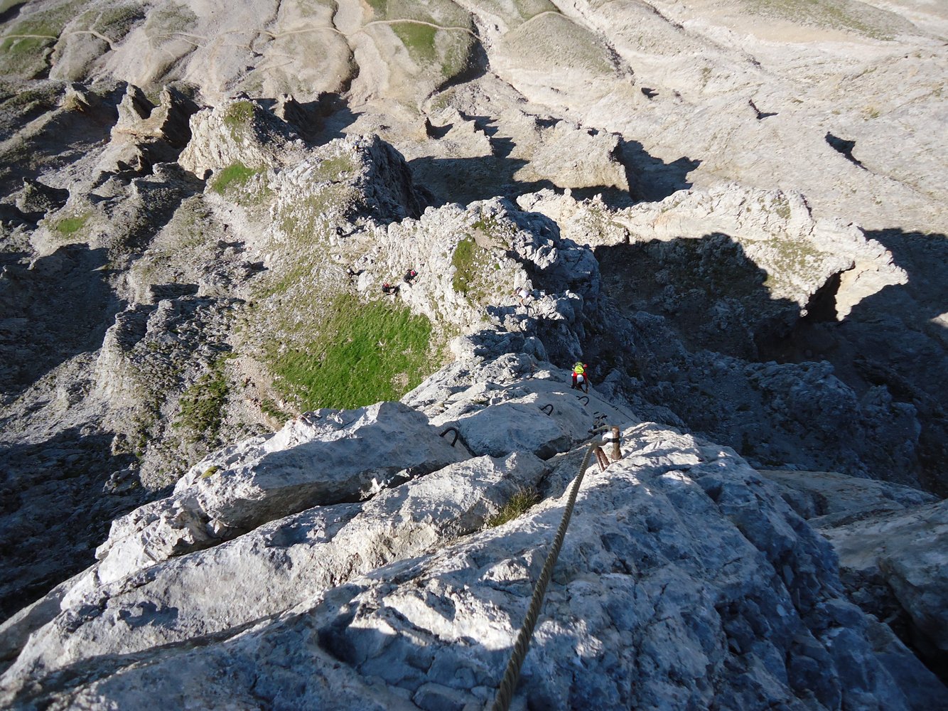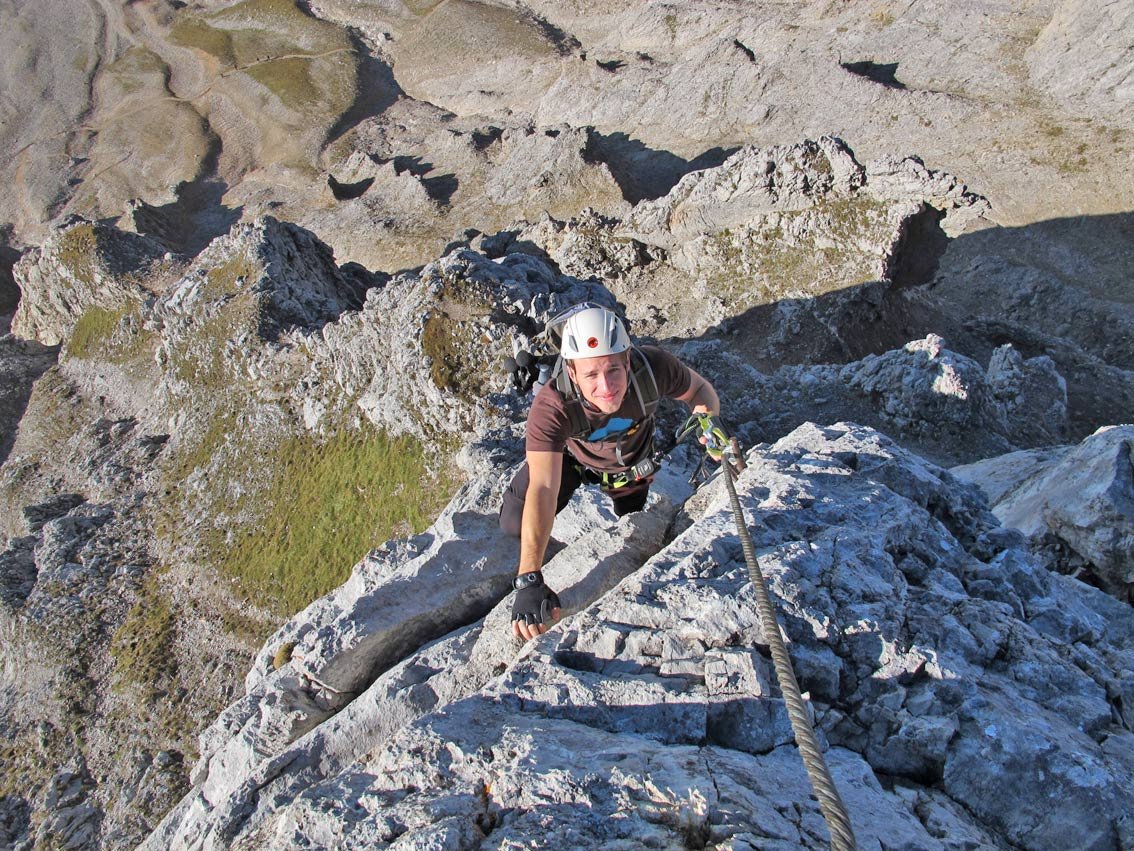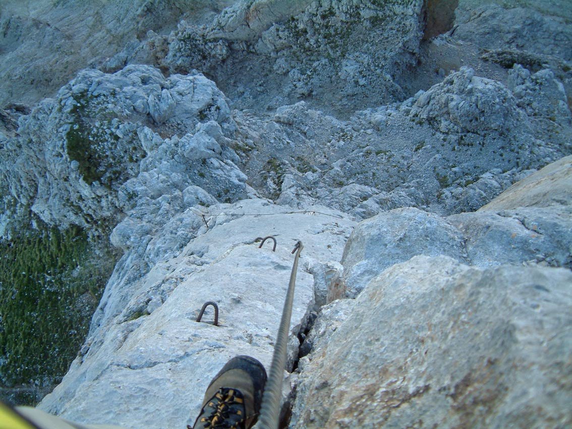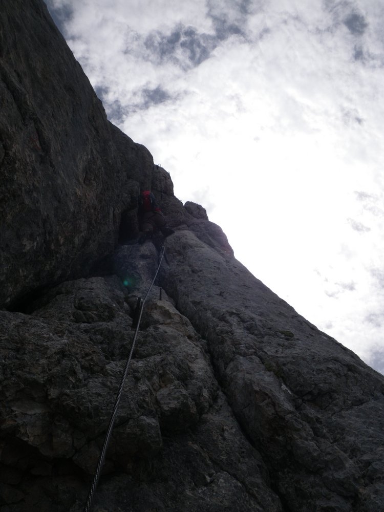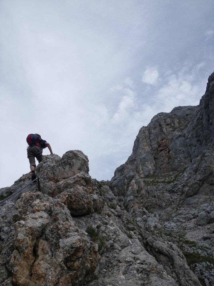 Kurzer, aber anstrengender Klettersteig, sehr ausgesetzte Passagen nahe der Vertikale, gesamt schwierig (C), eine Stelle sehr schwierig (D). Kinder und Anfänger sollten an ein Sicherungsseil genommen werden.