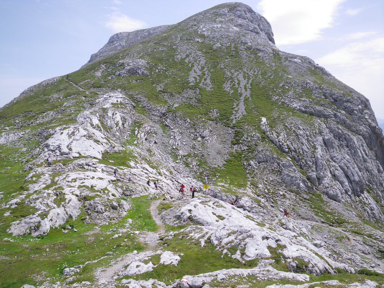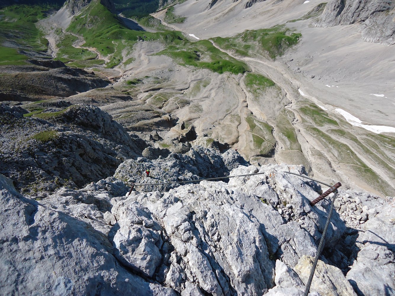 Stellenweise ohne Drahtseilversicherungen aber nur über Rasenflächen auf Rücken (flaches Gelände)