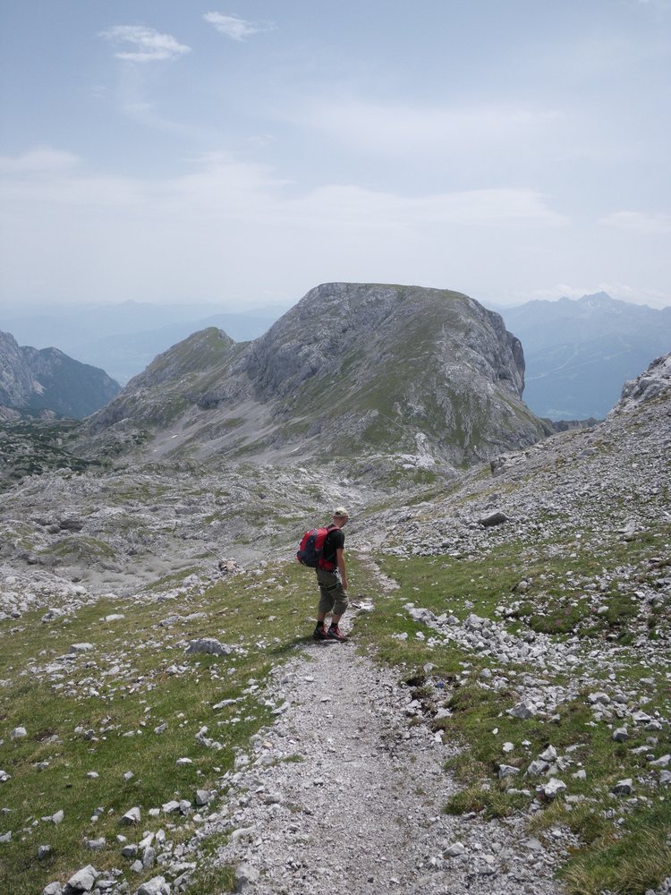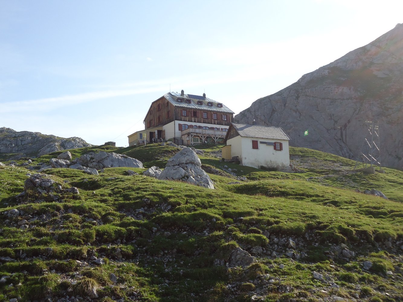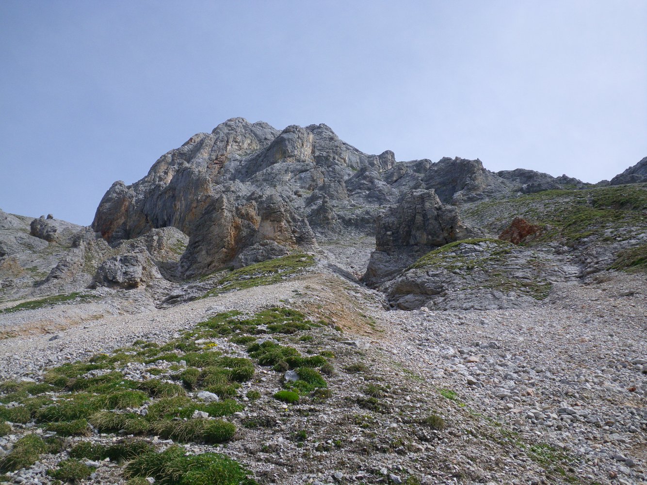 In der Ostflanke des Eselsteins über Steigspuren mit Steinmänner zum markierten Weg Nr. 674 und über die Feisterscharte zurück zum Guttenberghaus. Weiterer Abstieg wie Aufstieg