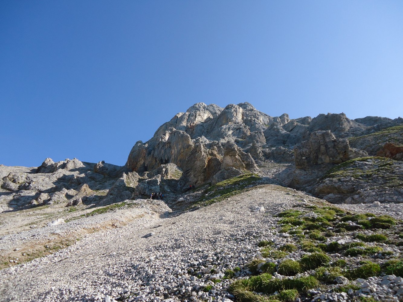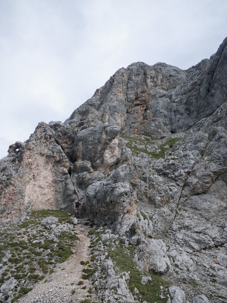 Von Guttenberghaus in Richtung Gruberscharte auf dem Höhenwanderweg 618 und nach etwa 20.min zu einer Abzweigung (Tafel: Klettersteig) des Geröllsteiges rechts aufwärts zum Einstieg mit Tafel