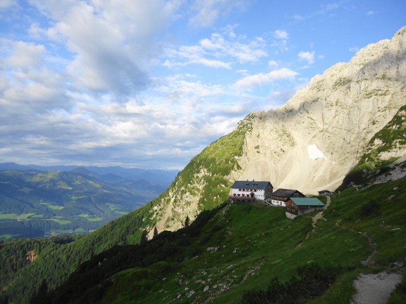 Von der Wochenbrunner Alm über die Gaudeamus Hütte ins Kübelkar zum Steigbeginn.