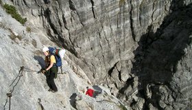 Leichter Klettersteig, der mit A/B (Stelle 1-) bewertet ist. Trittsicherheit erforderlich!
