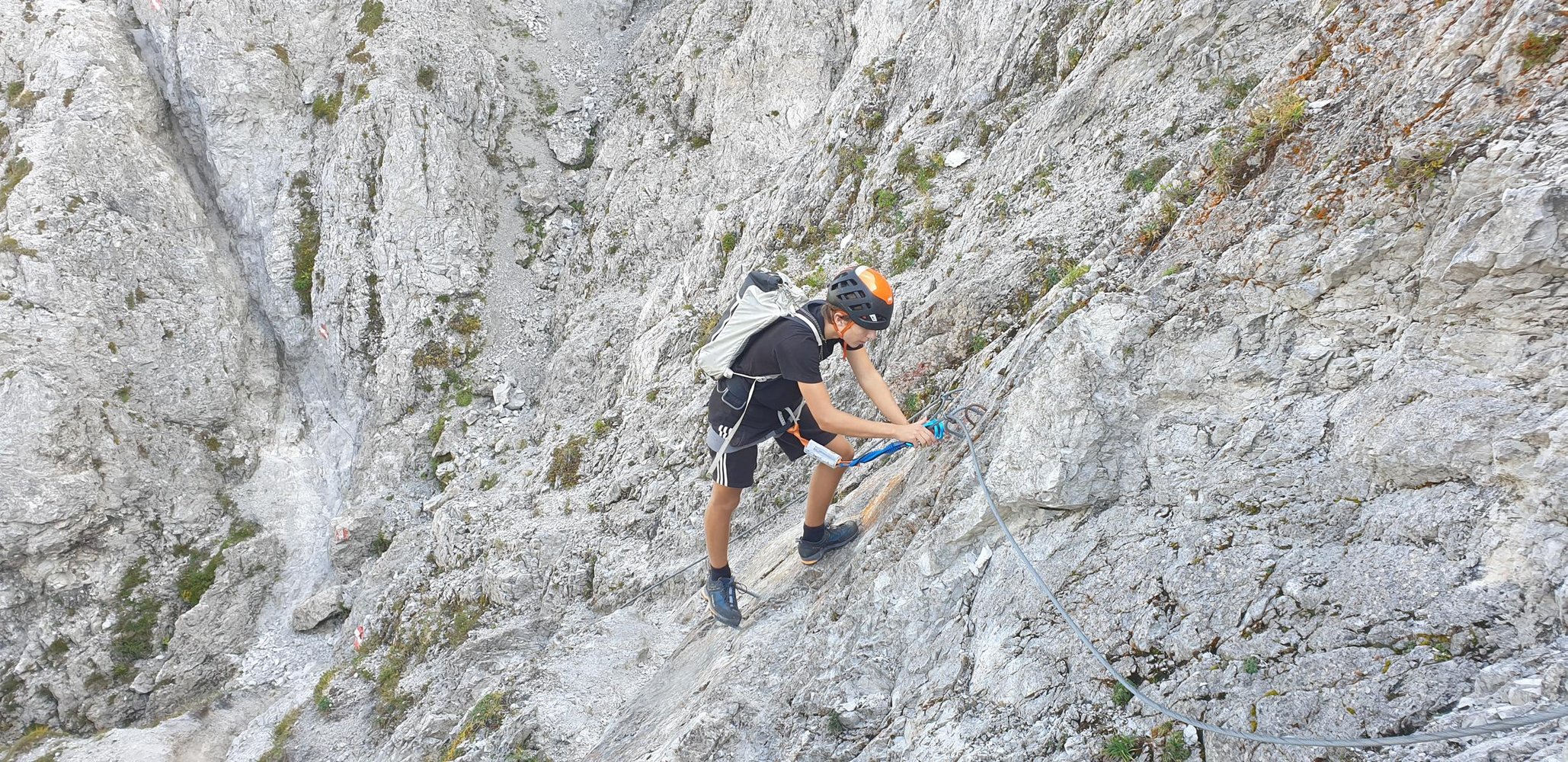 Klettersteigset, Helm, für Kinder event. kurzes Sicherungssei