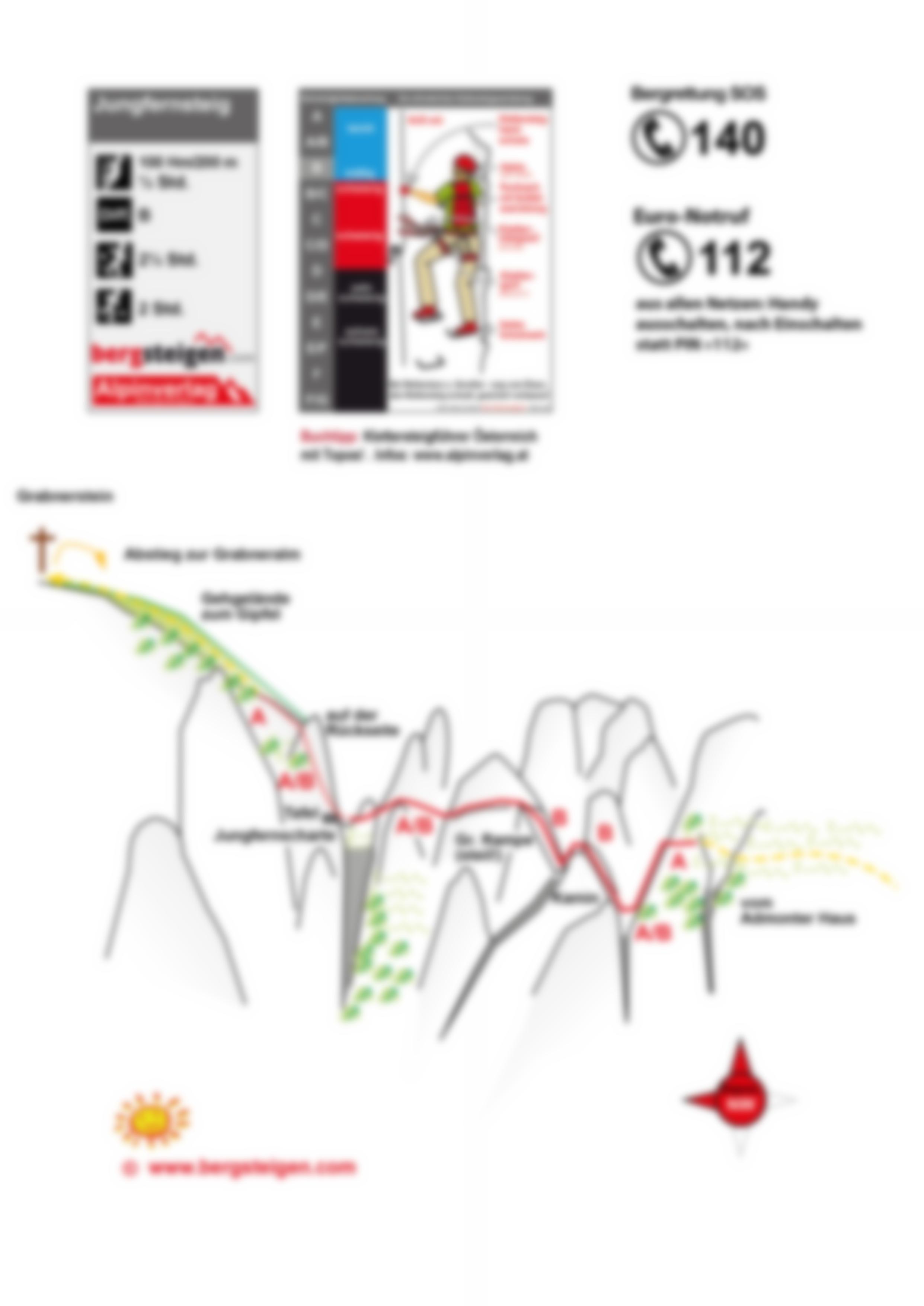 Vom Ausstieg dem Wanderweg zum Gipfel des Grabnersteins folgen. Der Abstieg vom Gipfel zur Grabneralm ist als Almlehrpfad angelegt. Ab der Grabneralm weiter über den Aufstiegsweg.