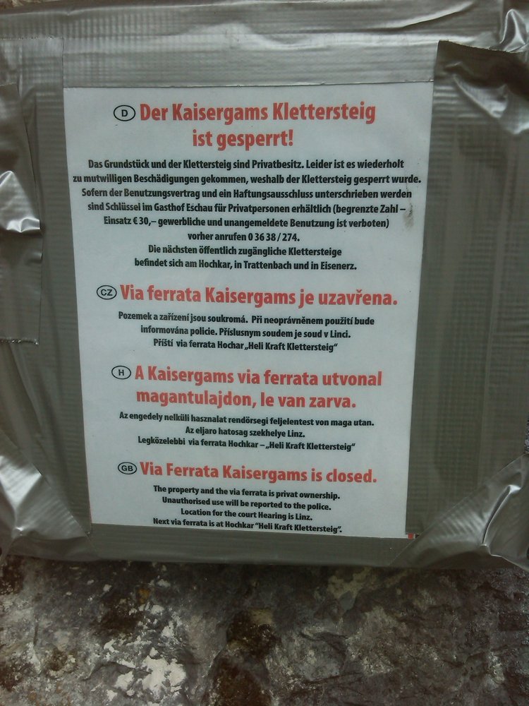 ACHTUNG: Der Kaisergams Klettersteig ist für Privatpersonen gesperrt und kann nur im Rahmen einer kostenpflichtigen Führung der Freelife-Outdoorsport GmbH aus Palfau begangen werden!