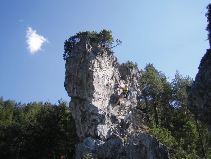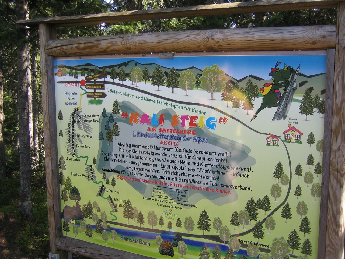 Ein eigens für Kinder angelegter Klettersteig im Nordhang des Sattelbergs, bei dem selbst auch Erwachsene ganz schön zupacken müssen. Die schwierigen Abschnitte können leicht umgangen werden, somit der Steig auch für Kids begehbar. Führungen - bei denen dann auch der „Fliegende Fuchs“ benutzt werden kann - werden vom Tourismusverband organisiert. Der Abstieg führt über den extra für Kinder errichteten Natur- und Umwelterlebnispfad. Leider hat der Steig aber auch sehr viele schottrige Abschnitte.