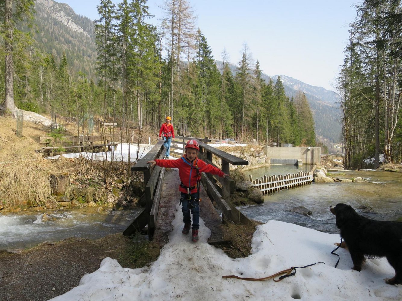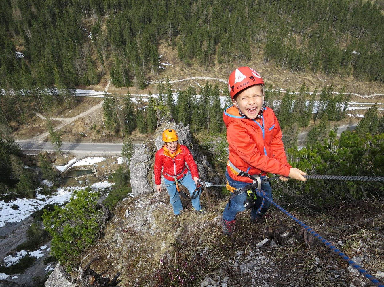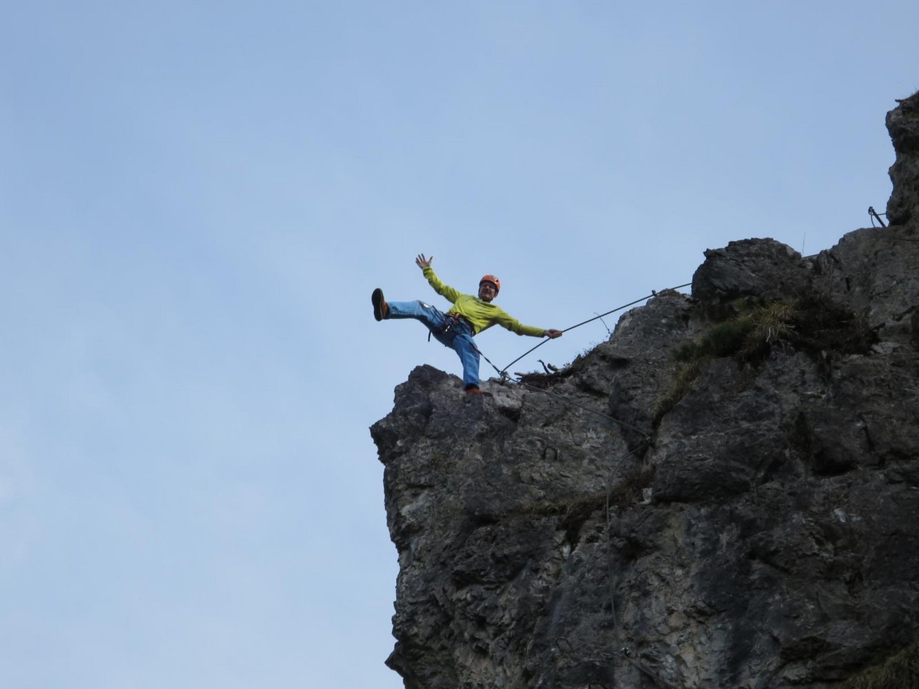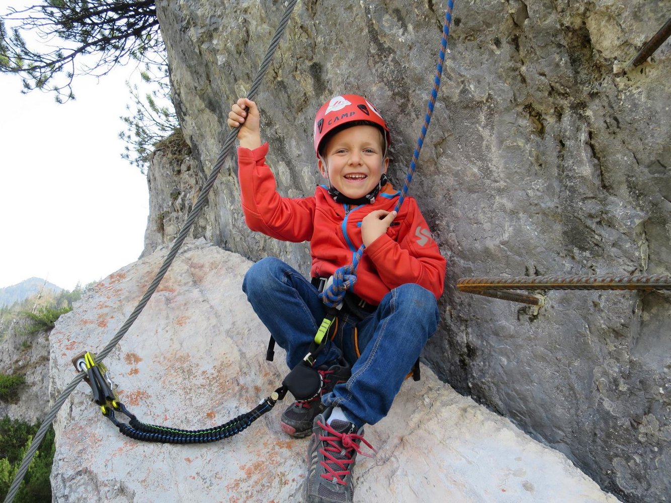 Komplette Klettersteigausrüstung und Helm, evtl. Klettersteighandschuhe. Für schwächere Klettersteiggeher und Kinder ein Sicherungsseil.
