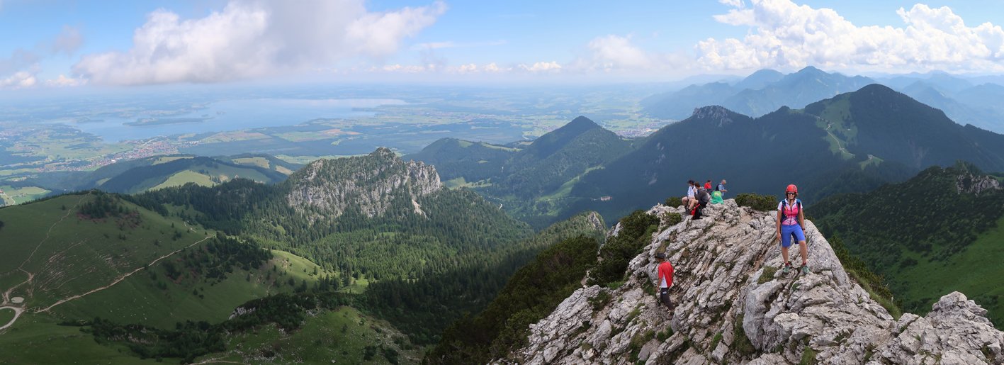 Schöner, einfacher aber kurzer Klettersteig auf die Kampenwand mit einem großartigen Ausblick auf den Chiemsee. Die "Klettersteigstellen" auf dem Ostgrat beschränken sich auf kurze Stufen im Gipfelbereich. Abstiegen wird auf dem von Wanderern stark frequentierten Normalweg - man kommt durch die eindrucksvollen "Kaisersäle" (Schlucht).