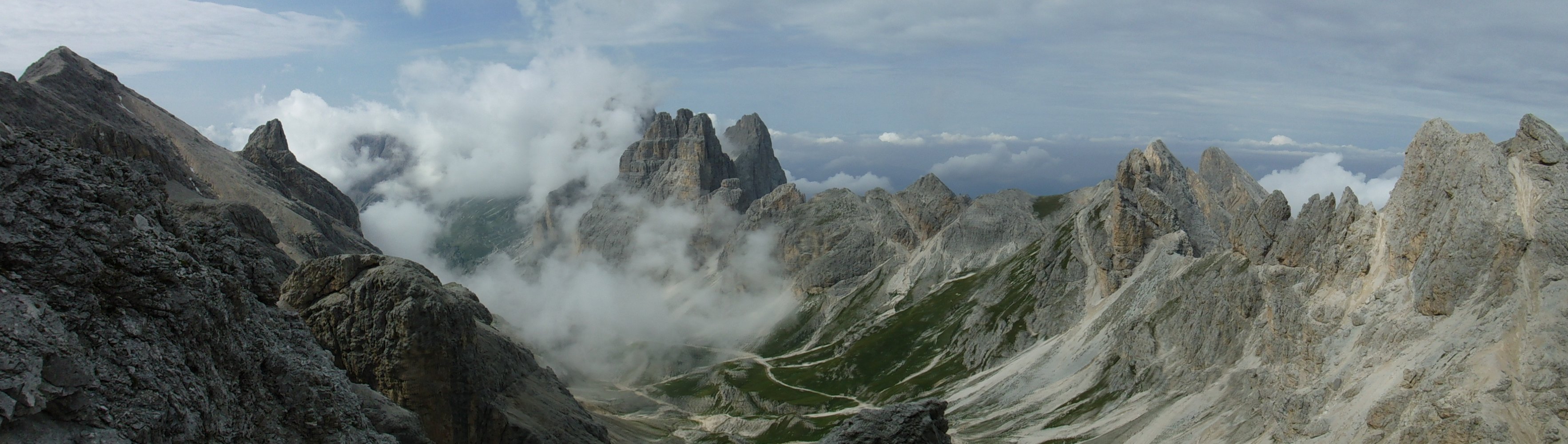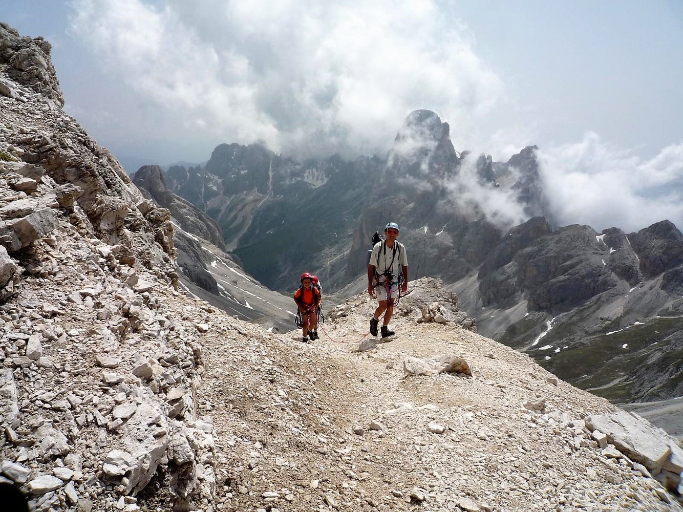 Der Kesselkogel überragt mit zwei Metern die 3000er Grenze und ist damit auch die höchste Erhebung im Zentrum von König Laurins Reich. Die Kesselkogel Überschreitung lässt sich perfekt mit anderen Steigen zu einer Zwei- oder Mehrtagestour verbinden. Von Norden kommend mit dem Laurenzi Klettersteig und von Süden mit den Rotwandsteigen oder dem Santnerpass Klettersteig. Wer es leichter mag, dem sei die Verknüpfung mit dem Scalette Steig ans Herz gelegt.
