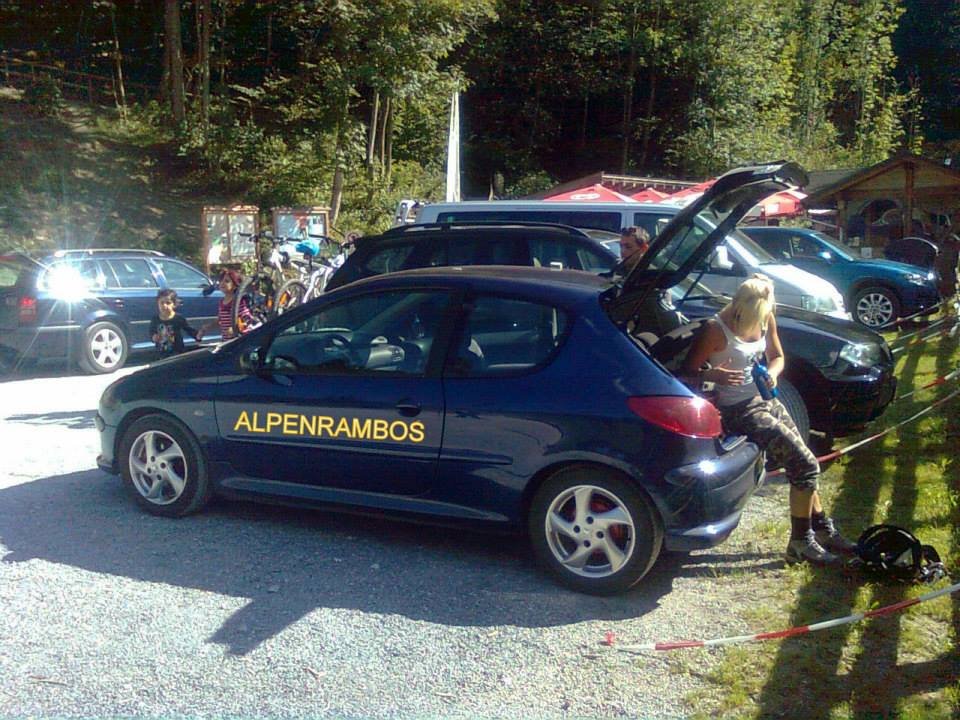 Komplette Klettersteigausrüstung. Für den sog. "Höhlensprint" (E/F) ist ein Sicherungsseil für Neulinge in diesem Schwierigkeitsgrad empfehlenswert.