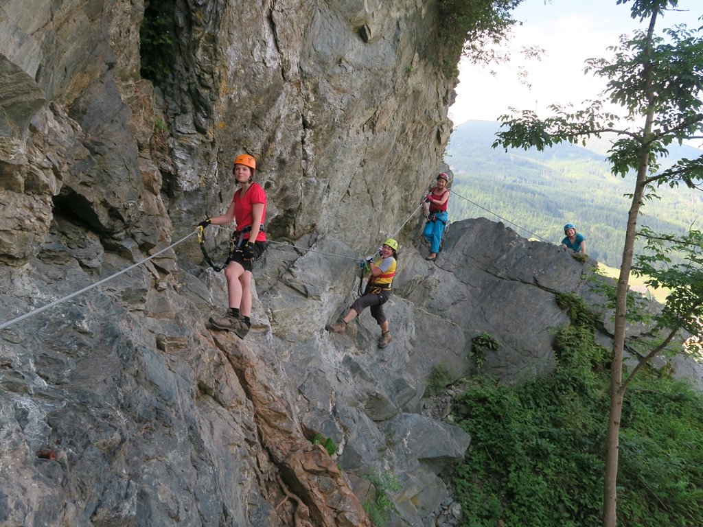 Familienklettersteig: C Wandtraverse: C/D Schlusswand: D/E Variante: E/F