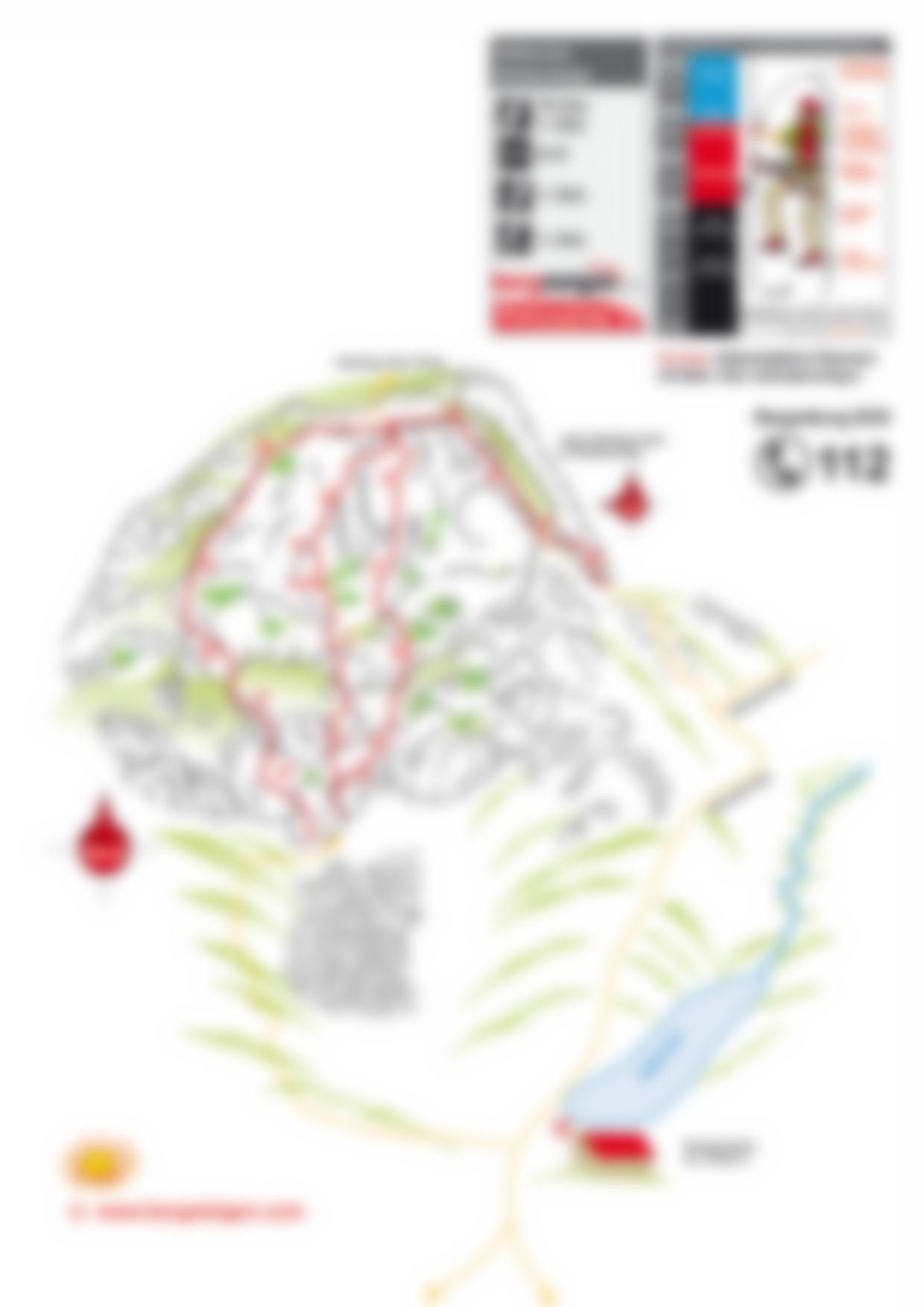 Siehe Topo. Die linke Variante ist leichter (B), die mittlere Ferrata ist schwer (D) und die rechte Kanten-Ferrata ist wieder mit C bewertet. Der A-Klettersteig ist an der Nordwestseite und wird auch gerne als Abstieg gemacht.