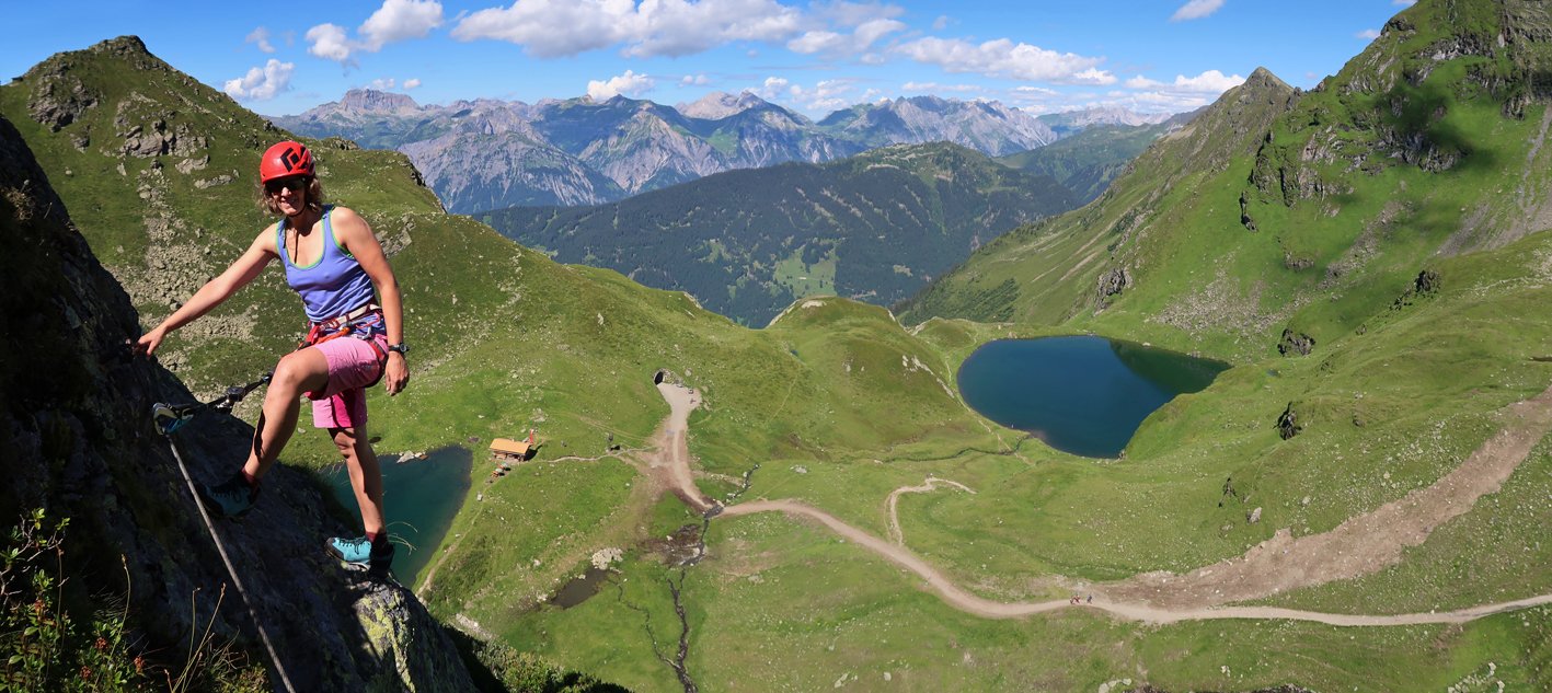 Drei kurze Klettersteige im Wanderparadies um das Hochjoch. Wer fit ist, kann diese vor dem Hochjoch-Klettersteig zum warm werden mit einbauen. Wer gerne mit der Familie wandert und dabei einen kurzen Klettersteig machen will, ist bei den Ferratas oberhalb der beiden Seen gut aufgehoben.