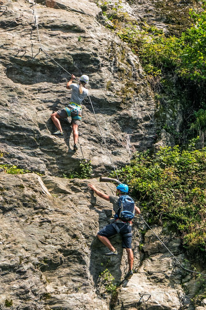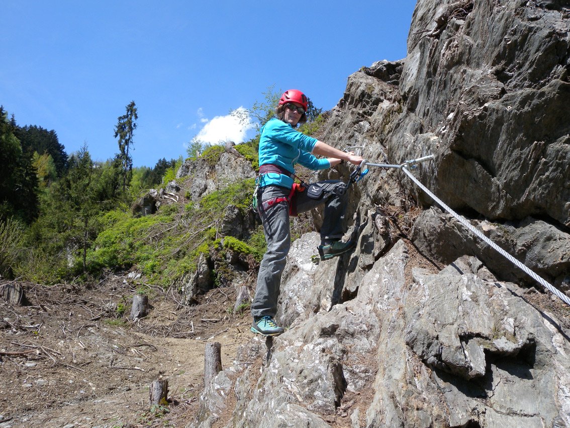 Der Klettersteig ist sehr gut mit Klammern und Stahlseil gesichert. Im unteren Teil - Trainingsparcour - steigert sich die Schwierigkeit langsam von A bis D/E - perfekt um seine Grenzen auszuloten.