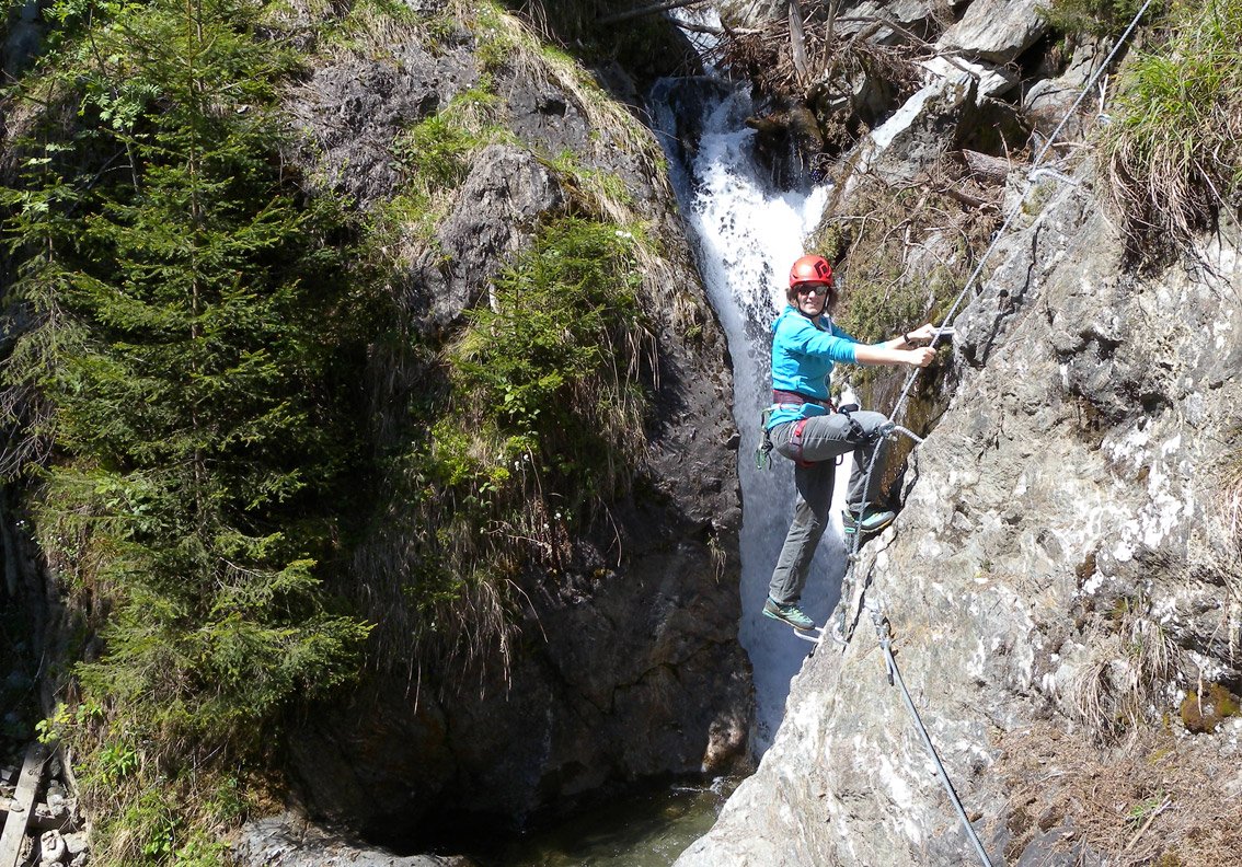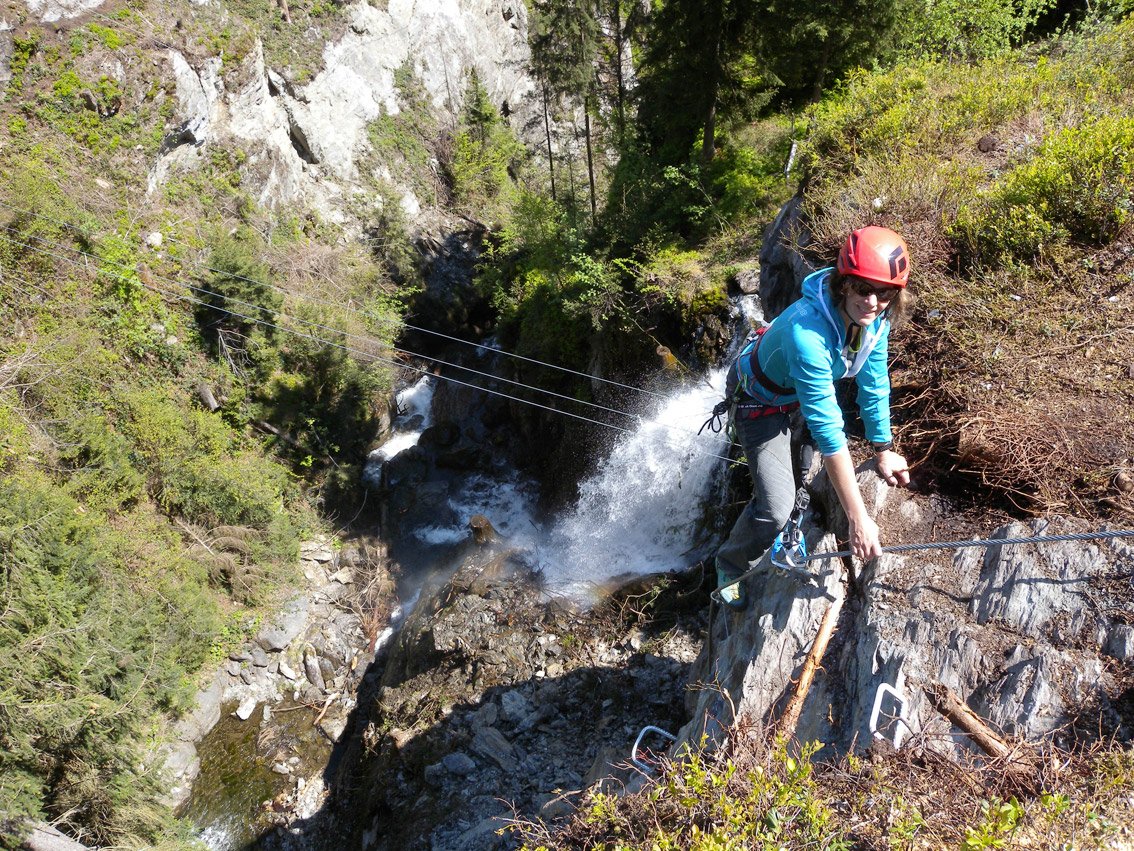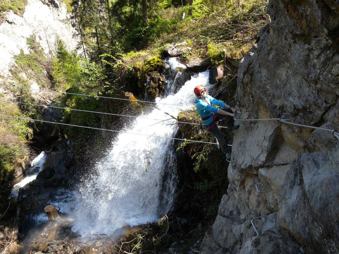 Der Talbach Klettersteig ist ein sehr schön angelegter Klettersteig - direkt neben dem Talbach Wasserfall! Der Klettersteig ist so errichtet, dass man sich langsam steigern kann. Der leichte Einstiegsbereich ist für Einsteiger und Kinder ideal. Nach jeder Steigerung der Schwierigkeit gibt es einen Notausstieg zum Weg. Der Hauptteil spricht den fortgeschrittenen Klettersteiggeher an. Highlight sind sicher die zwei sehr langen Seilbrücken, wobei die letzte direkt über dem Abfluss des Wasserspeichers endet - im Frühjahr oder bei viel Niederschlag gibt es dort einen tosenden Wasserfall.