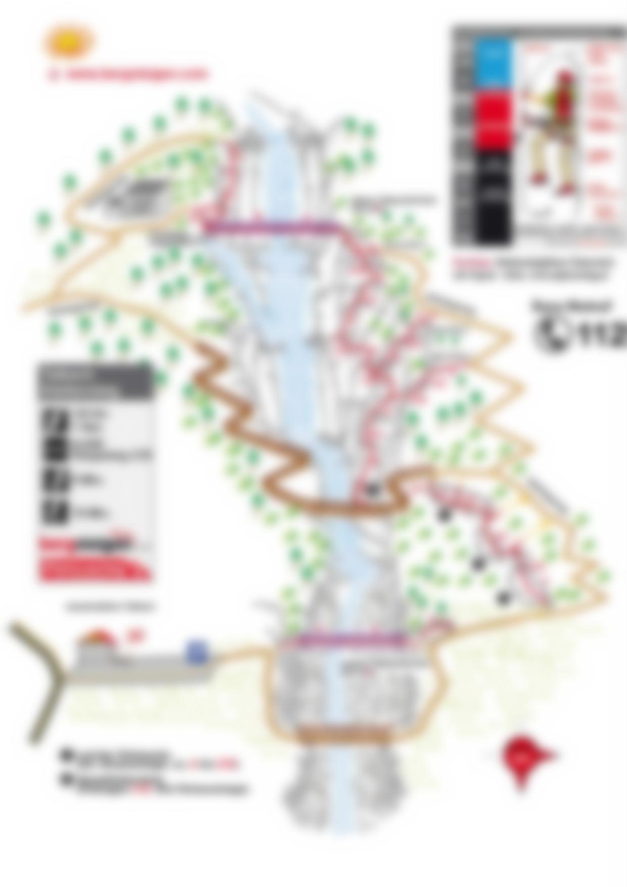 Siehe Topo. Beim Hauptklettersteig gibt es 3 Notausstiege, diese sind im Topo vermerkt.