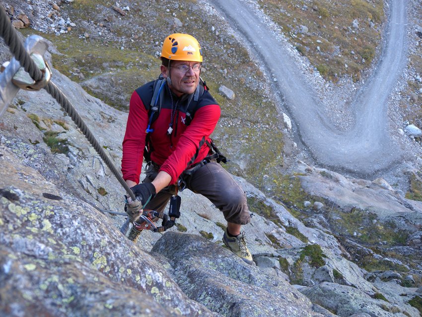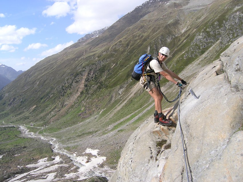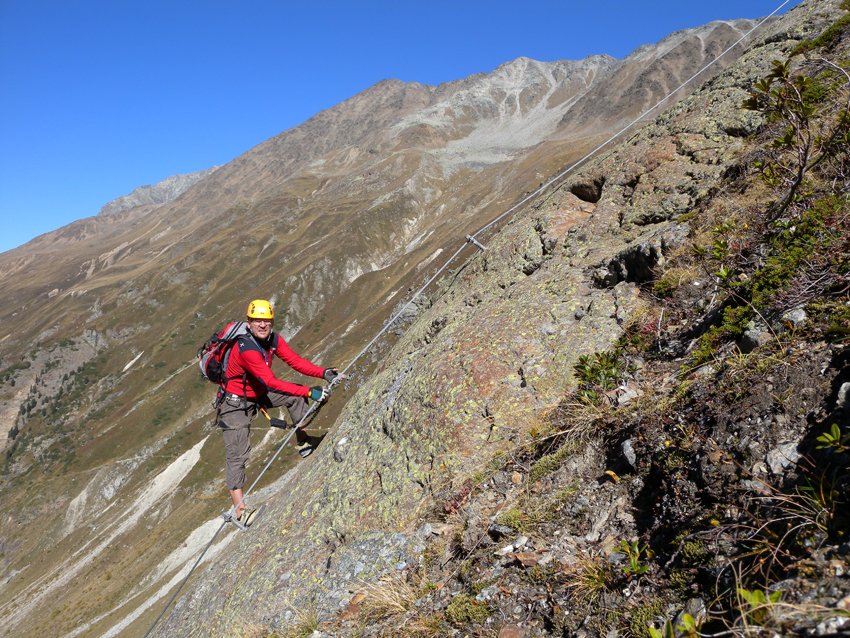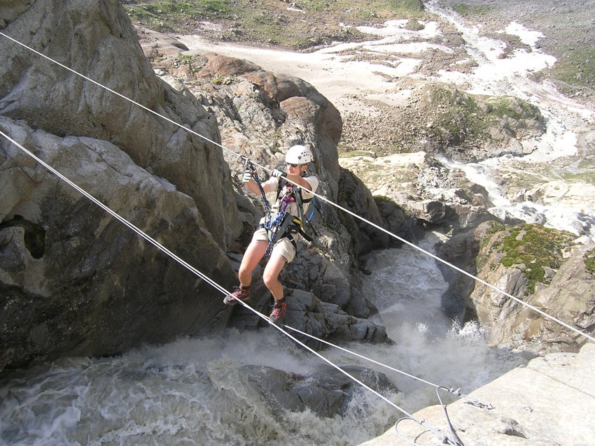 Wer den Klimawandel in Tirol hautnah miterleben möchte, ist bei diesen Klettersteigen genau richtig, denn bei der Balancierbrücke des Erlebnisklettersteiges rauscht im Sommer das Wasser des geschmolzenen Gletschereises mit gewaltiger Wucht direkt unter den Füßen ins Tal. Die vier Klettersteige lassen die roten und grauen Platten - ganz ohne Tritthilfen - ganz der Natur, dennoch sind die Anstiege bestens abgesichert und sowohl für Einsteiger als auch für Experten geeignet