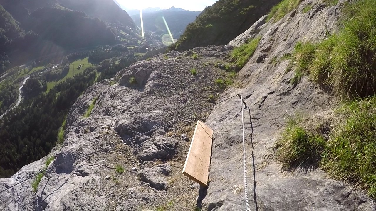 Sehr langer und fordernder Klettersteig, der durchaus etwas Kondition erfordert. Mit über 500 Hm durchaus ein anspruchsvolles Unternehmen, welches man NICHT unterschätzen sollte - es ist KEIN Notausstieg vorhanden! Bei Nässe ist der Klettersteig wegen der vielen glatten Felspassagen nicht zu empfehlen. Auf Steinschlag ist vor allem oberhalb der unteren Steilstufe durch Vorauskletternde zu achten!