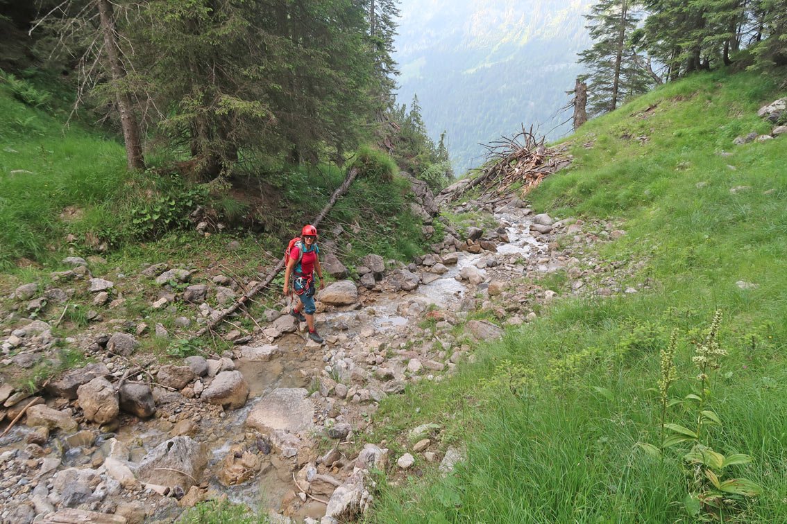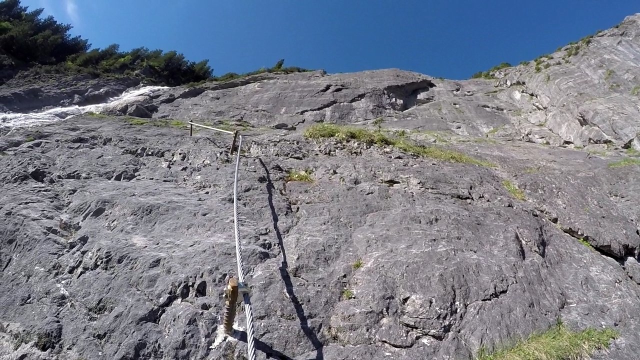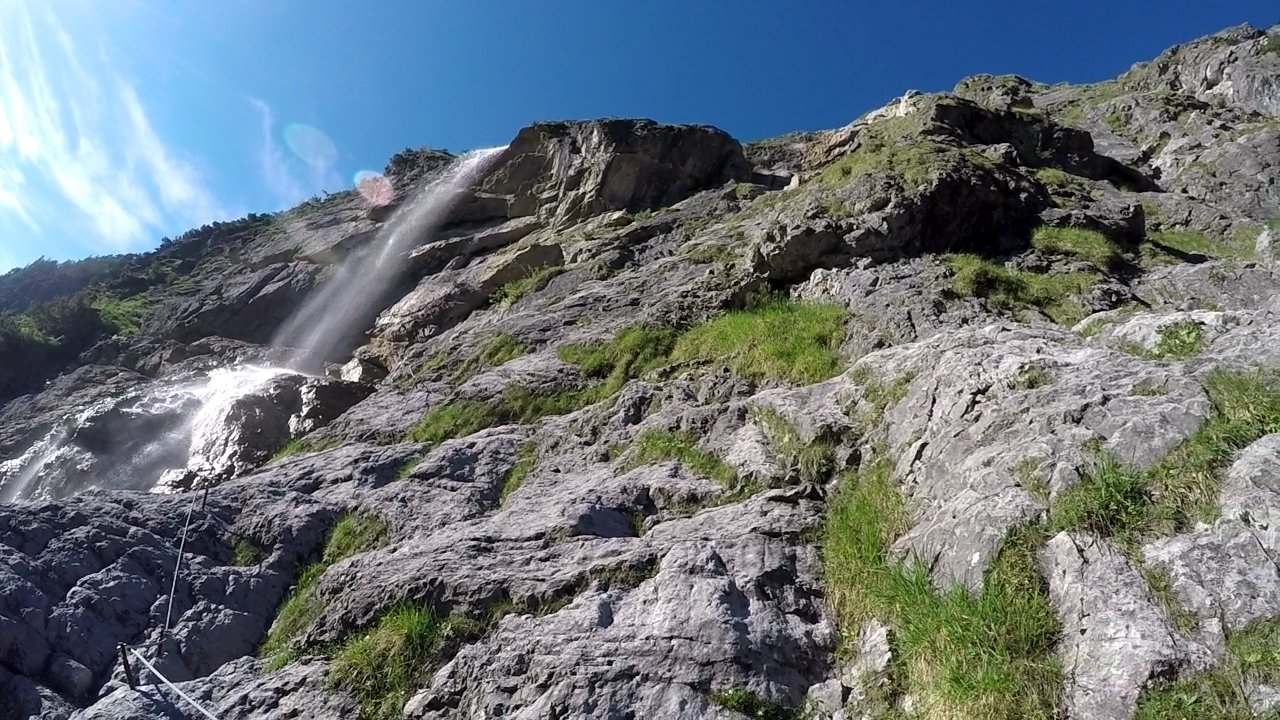 Der Klettersteig verläuft direkt neben dem Wasserfall – wenn noch Schnee und Eis an der Wand haftet, den Klettersteig auf KEINEN Fall begehen. Inwieweit die Sicherungen jedes Jahr zu erneuern sind, wird sich zeigen (oft rauschen im Winter Lawinen und Steine über diese Wand).