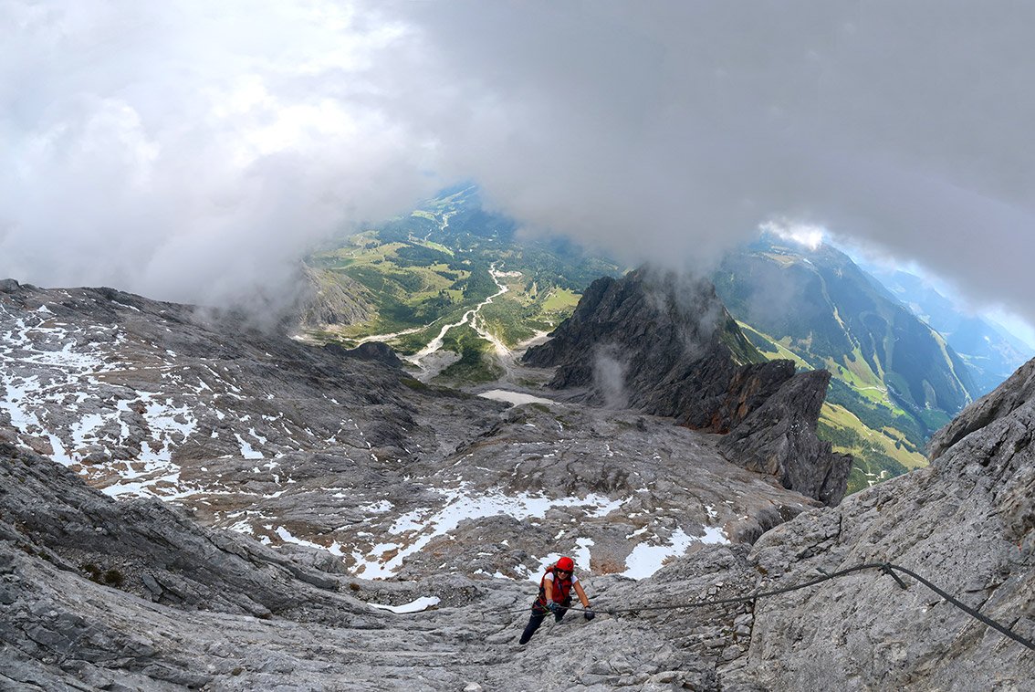 Konditionell sehr fordernder Klettersteig – einer der längsten Klettersteige in Österreich. Nur bei sehr sicherem Wetter einsteigen. Achtung: Der sehr steile Abstieg über das Birgkar ist gesamt sehr heikel und nur versierten alpinisten zu empfehlen - bei Nässe und Schneelage sehr gefährlich!
