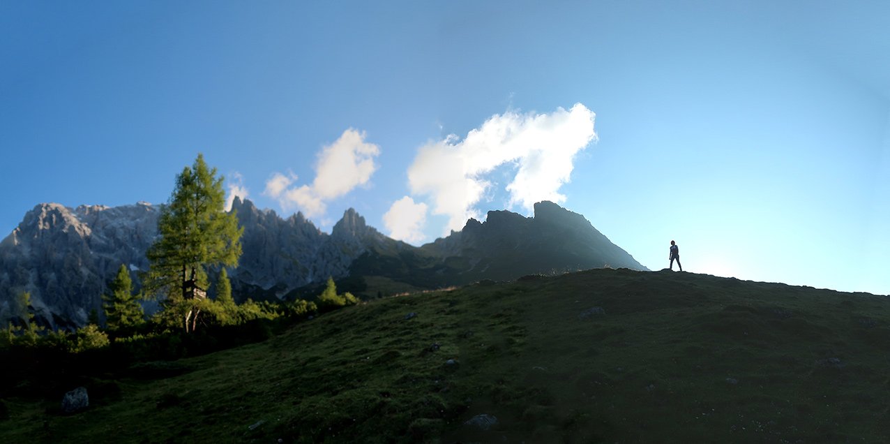 Abstieg zum Arthurhaus: Von der Birkarscharte in Richtung Hochkönig-Gipfel/Matrashaus, unterhalb der Hütte aber rechts auf dem Normalweg vorbei an der Torsäule zur Mitterfeldalm absteigen. Von dort auf dem Forstweg zum Arthurhaus (bis dorthin ca. 4,5 Stunden) und mit dem Shuttelbus zurück zum Ausgangspunkt.