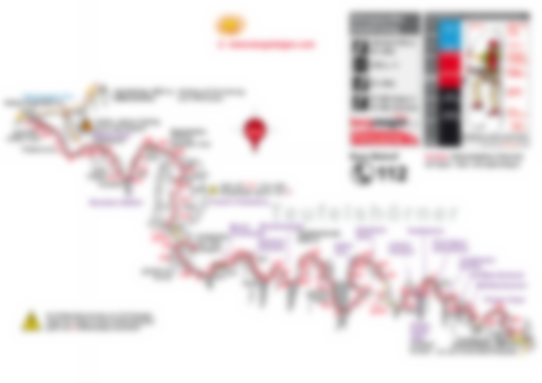 Achtung: Obwohl der Steig "nur" mit C/D bewertet ist, gehört er aufgrund seiner extremen Länge in großer Höhe zu den schwierigsten Sportklettersteigen der Ostalpen (Gesamtanspruch wie ein langer, knackiger D-Klettersteig!). Die Passagen sind zum Teil sehr ausgesetzt und meist nicht leichter als B/C ist (nach oben hin zunehmende Schwierigkeiten). Sehr gute Kondition und Erfahrung mit Klettersteigen in diesem Schwierigkeitsgrad sind unbedingt notwendig. Für Anfänger absolut ungeeignet.