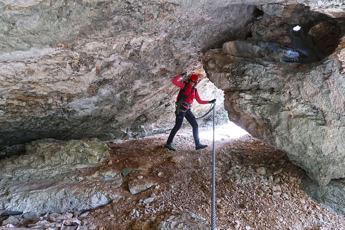 Eine Passage C, oft B/C und B, nur ganz oben wird der Klettersteig leichter. Die Variante bei der Höhle ist C/D.