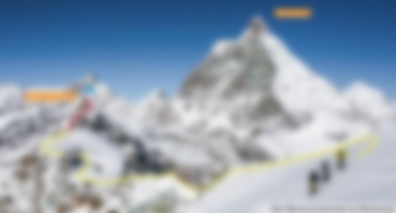 Von der Station folgt man dem Grat an der Nordseite noch ca. 200 m nach Nordwesten und fährt dann anfangs sehr steil (Lawinen!) westlich auf dem Ghicciaaio della Forca Gletscher Richtung Abruzzihütte, man biegt davor nach Süden (Cervinia) ab (1500 Hm-Freeridespaß!). Von dort mit div. Liften wieder zurück nach Zermatt. Im Sommer geht man auf dem Klettersteig (Aufstiegsweg) zurück (ca. 3 Std.).