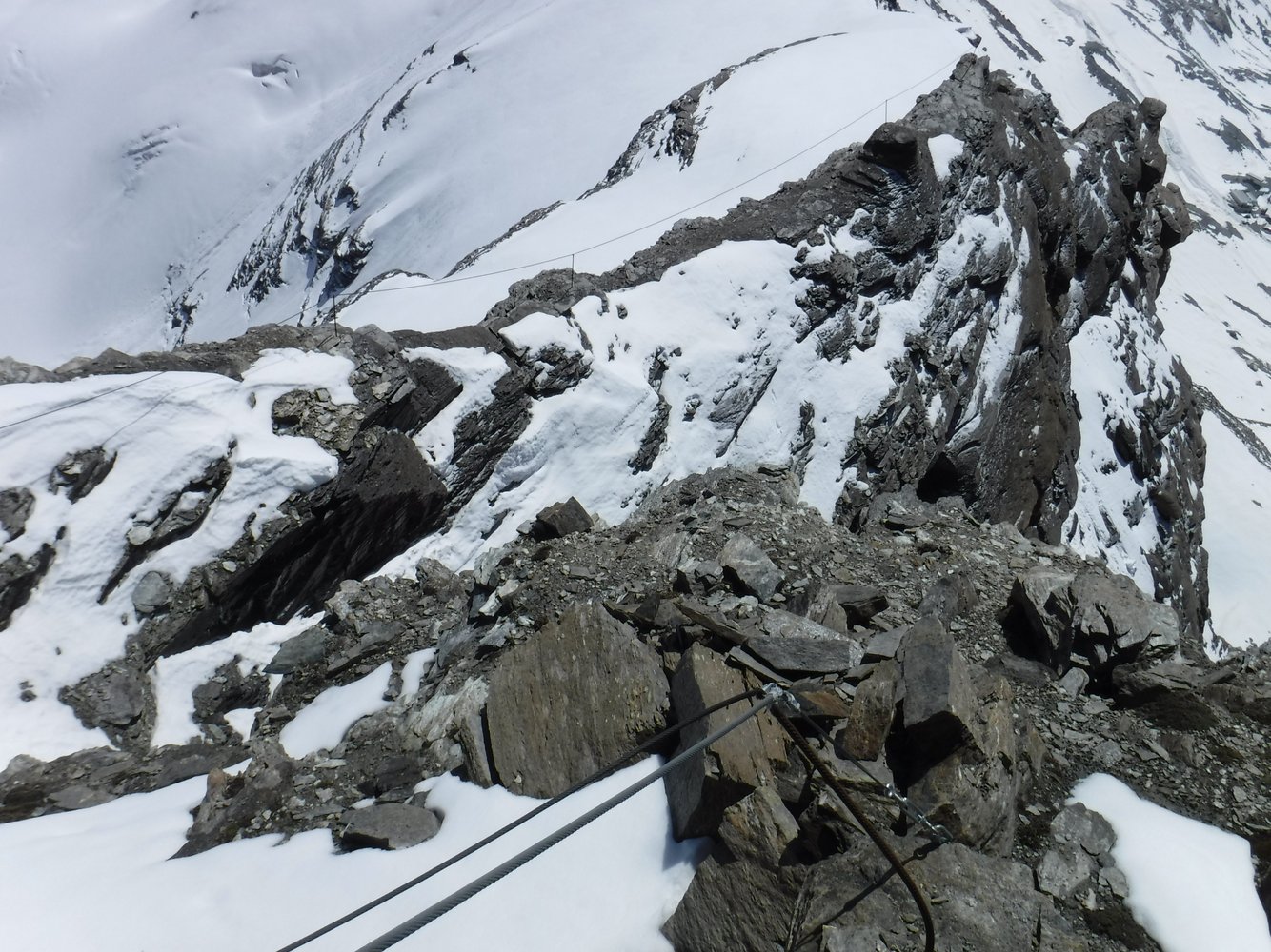 Hochalpiner (im Sommer heikler Gletscher) und ernster Klettersteig! Lawinengefahr im Winter beachten. Im Winter ist der Furgggrat bis zum Sicherungseil anspruchsvoll! Die alte Station darf man nur im Notfall betreten (Eingang auf der Westseite).