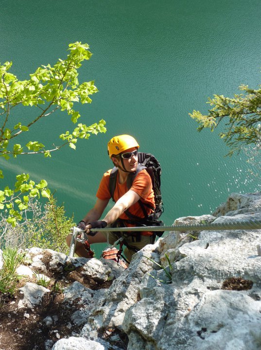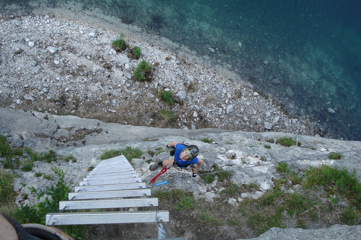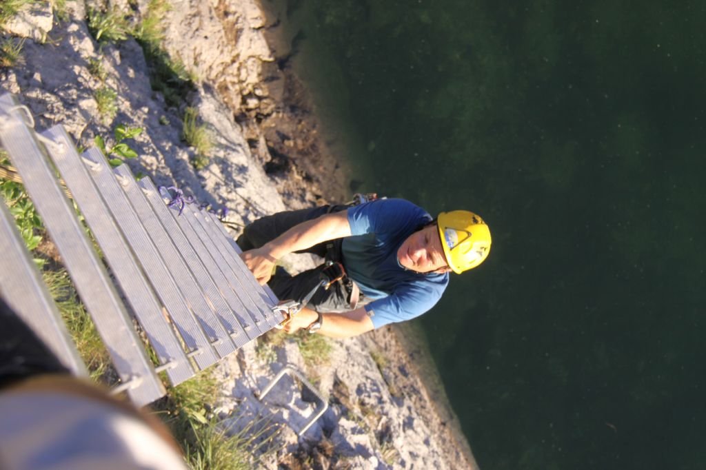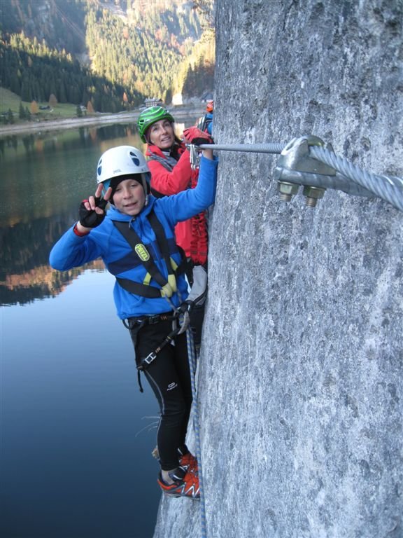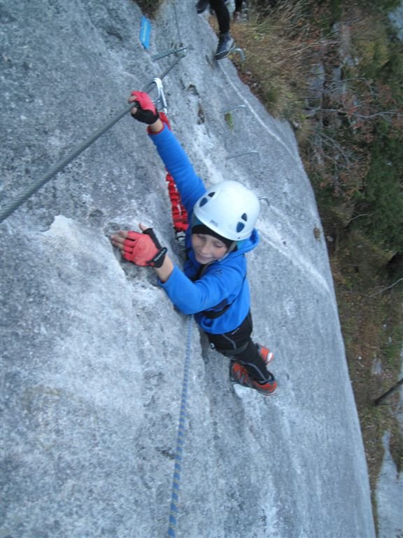 für Julian - er ist guter Dinge und meistert die schwierigen Stellen am Klettersteig.,
