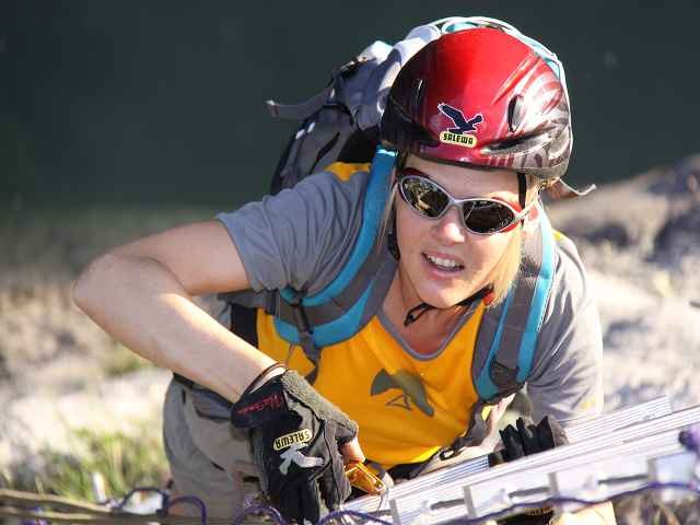 Anna Selina kurz vor dem Ausstieg der wunderschönen Klettersteigrunde.