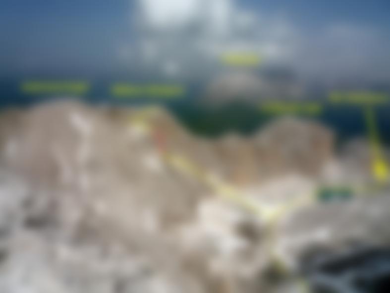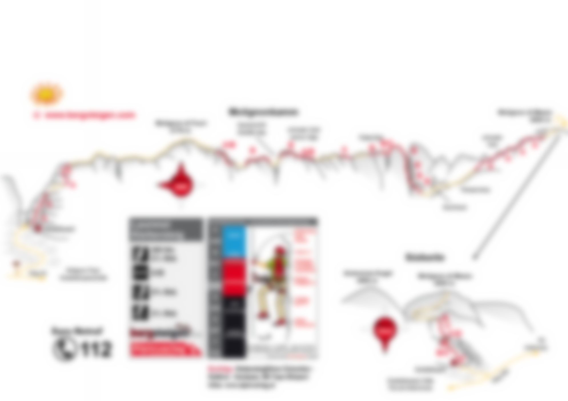 Siehe Topo. Route: Über eine Rampe, die ersten 30 m versichert (A), danach gehen zum Grat des Molignonkammes. Auf dem bald breiter werdenden, unversicherten Kamm nach Südosten zum Gipfel des Nordwestlichen Molignon, 2.778 m. Vom Gipfel leicht absteigend dem wieder schmalen Grat im stetigen Auf und Ab (A/B) zu einem Gratturm folgen und steil nach Süden in eine schluchtartige Rinne absteigen (B), nach einigen Metern links auf eine Rampe (B) und zum Steigbuch. Über die Rampe unversichert zum Grat (A) aufsteigen und bis zum Gipfel der Mittleren Molignon, 2845 m. Anschließend südseitig immer steiler werdend über Geröll absteigen. Anfangs südlich, dann vor der Scharte wieder in östlicher Richtung hinunter bis zu einem Felsgrat oberhalb einer Rinne. Versichert (anfangs B, dann C) hinunter und zuletzt über eine kurze, glatte und steile Wandstelle (C/D) zu den letzten Versicherungen (bis C) links von einer markanten Geröllrinne. (Die Route hat stellenweise rote Markierung und Steinmänner).