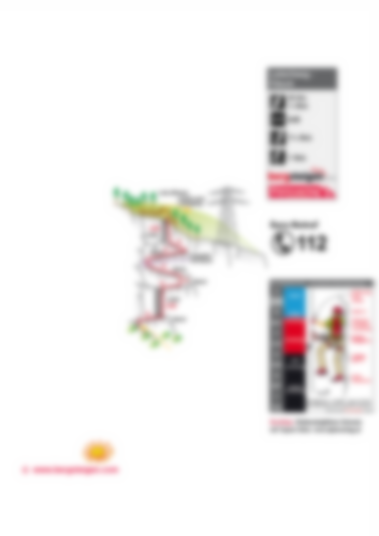 Siehe Topo. Die Schlüsselstelle ist gleich die erste, etwas steilere Leiter (kurz A/B), der Rest ist leichter. Die Tour endet bei einem riesigen Strommast.
