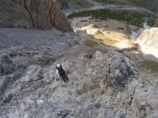 Beim Zustieg schon unten auf dem Weg anseilen, oben beim Beginn des Stahlseils ist wenig Platz (Absturzgefahr - deshalb besser unten anseilen)!