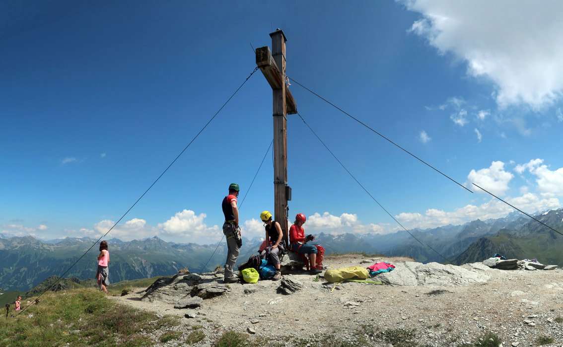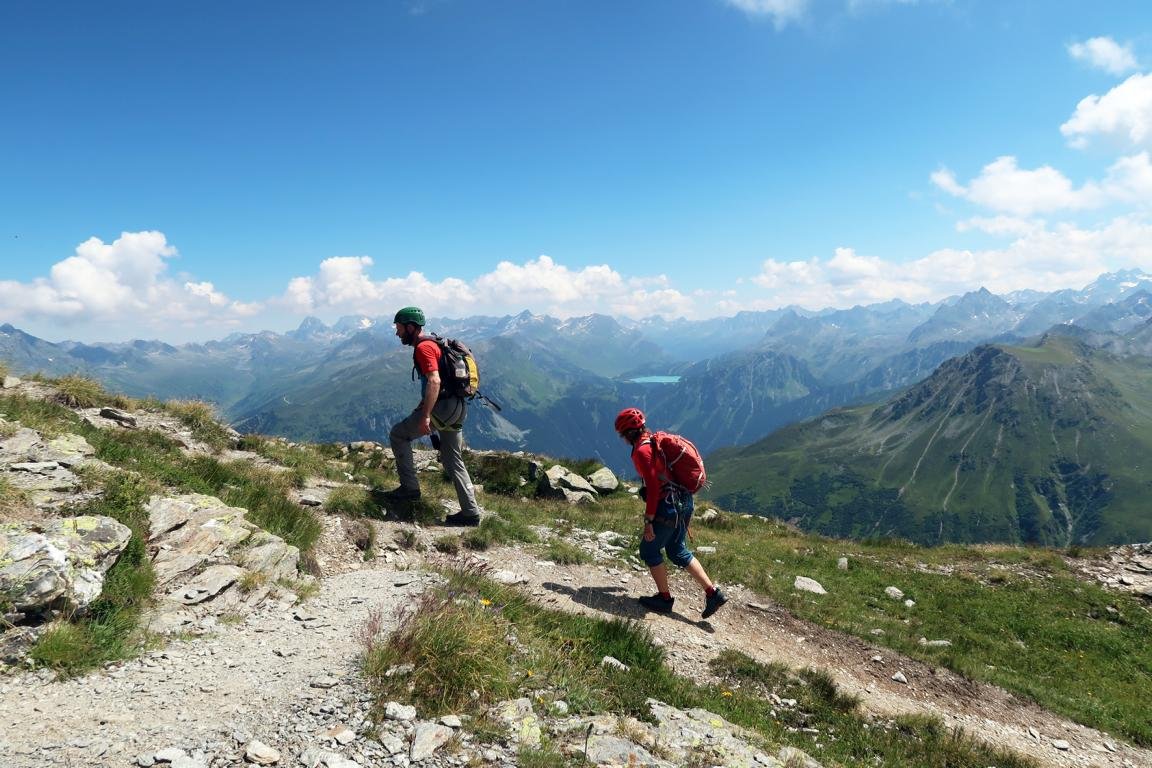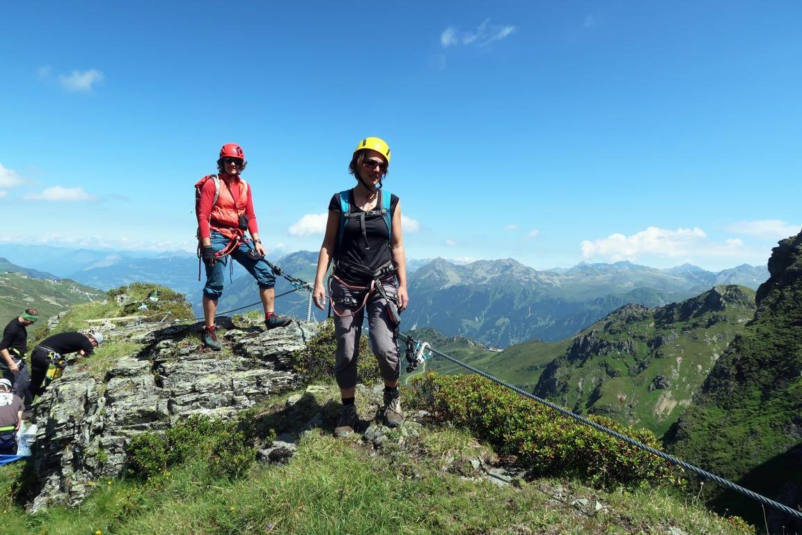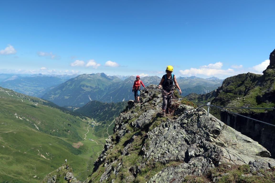 Vom Ende des Klettersteiges in ca. 15 Minuten zum Gipfel der Madrisella (2466 m). Von dort nördlich dem Kamm entlang – vorbei am Gipfel der Versettla (2372 m) - und weiter in Richtung Burg (2247 m). Vor dem letzten Grat entweder links über den sog. Burgklettersteig (A/B; kurzer, leichter Gratklettersteig) oder rechts davon auf dem Wanderweg zurück zur Bergstation.