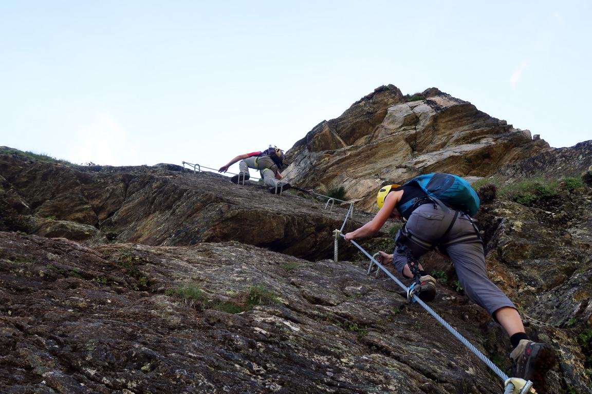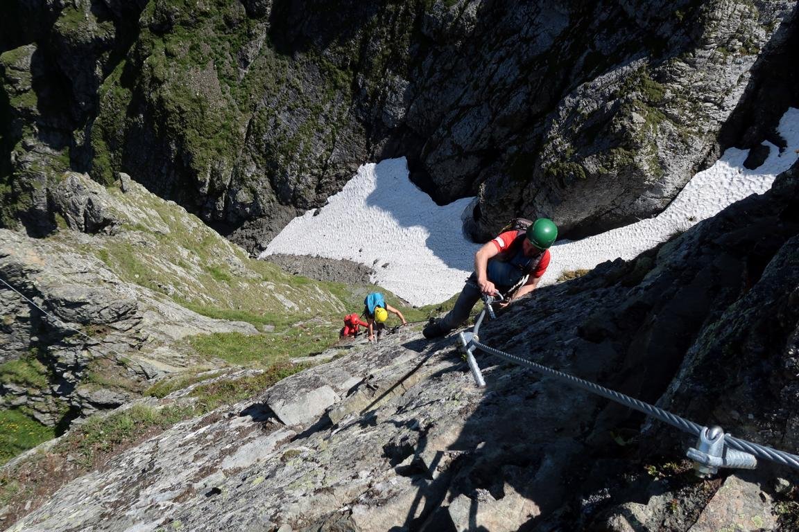 Nur wenige kurze Passagen C/D, meist um C und leichter. Für Leute mit guter Ausdauer geht der Madrisella-Klettersteig auch als C-Ferrata durch.