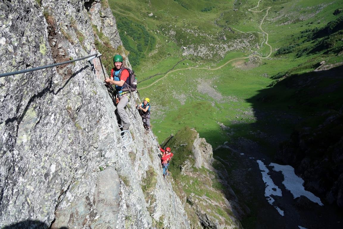 Ein richtiger Genussklettersteig mitten im Montafon – anders kann man den Eisenweg an der Nordwand der Madrisella nicht beschreiben. Geschickt wurden die zahlreichen Vertikalpassagen mit unzähligen Klammern entschärft – nur ganz kurze C/D-Passagen müssen geklettert werden. Genussklettersteiggeher finden an der mittelschweren Ferrata zahlreiche Rastpositionen und können so den Blick in die tolle Bergwelt genießen. Eine fantastische Bergwelt, ein nicht allzu schwerer Nordwand-Klettersteig und mit etwas Glück beim Zustieg ein zahmes Murmeltier bereichern diesen Bergtag.