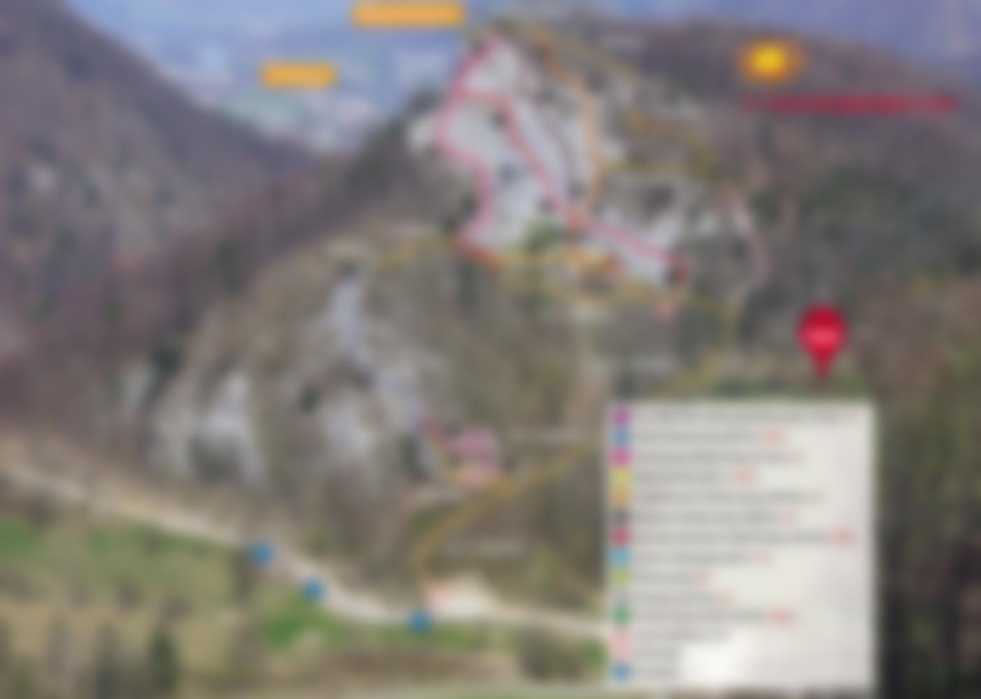 Vom Parkplatz den Forstweg etwas aufwärts, dann links zum Übungsklettersteig bzw. zum Feitel Klettersteig.