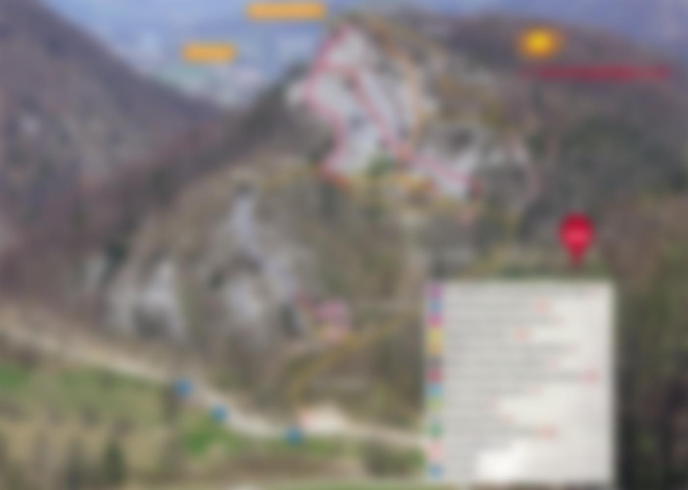 Die Felswand wurde im wahrsten Sinne des Wortes systematisch mit Klettersteigen überzogen. Die Infotafel zeigt gleich was ab geht, vom Übungsklettersteig „The little Rock“ (Stelle C) bis zur megaschweren „Mammut-Route“ (solide und recht anhaltend E) reicht die Auswahl. Die sogenannte „Mammut Route“ (E), gesponsert vom gleichnamigen Bergsporthersteller, der in der Nähe seine Österreichzentrale hat, ist der schwerste Klettersteig an der Beisteinmauer - vor allem Aussdauer und viel Kraft sind nötig, um die lange, immer leicht überhängende E-Passage zu bewältigen.