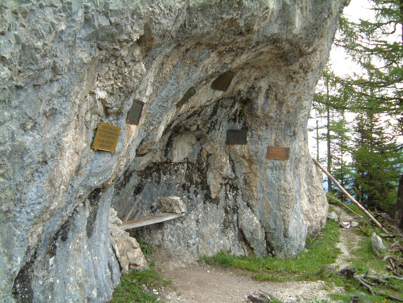 Vom Parkplatz über eine Wiese in den Wald, wo man sich bei einer Weggabelung links hält (Wegweiser, Weg 825). Weiter durch eine lichtungsartige Waldschneise bis zu einer Forsttraße (Abzweigung Schrabachersteig - Tafel). Hier links die Forststraße entlang bis der Weg nach einer Kehre bei einem Haus rechts auf den Rücken abgeht. Nun steil bergauf, wieder über eine Forstraße, immer am Rücken stellenweise in Serpentinen steil über den Südwestrücken hinauf bis zu einer markanten Felsnische mit Gedenktafeln. Hier zweigt der Eisenerzer Klettersteig ab. Links halten und in Kürze zum Einstieg.