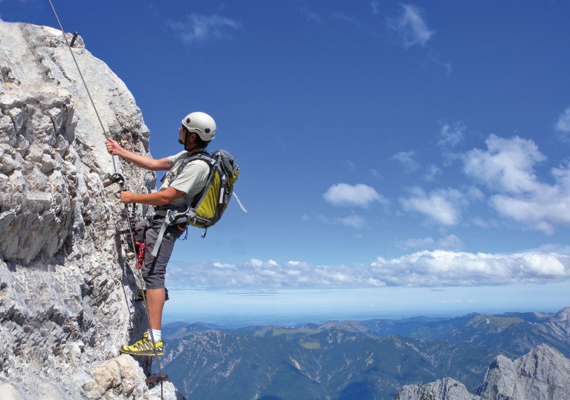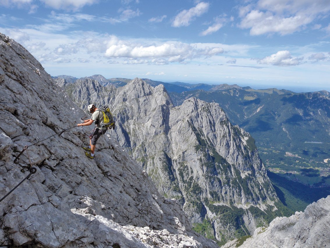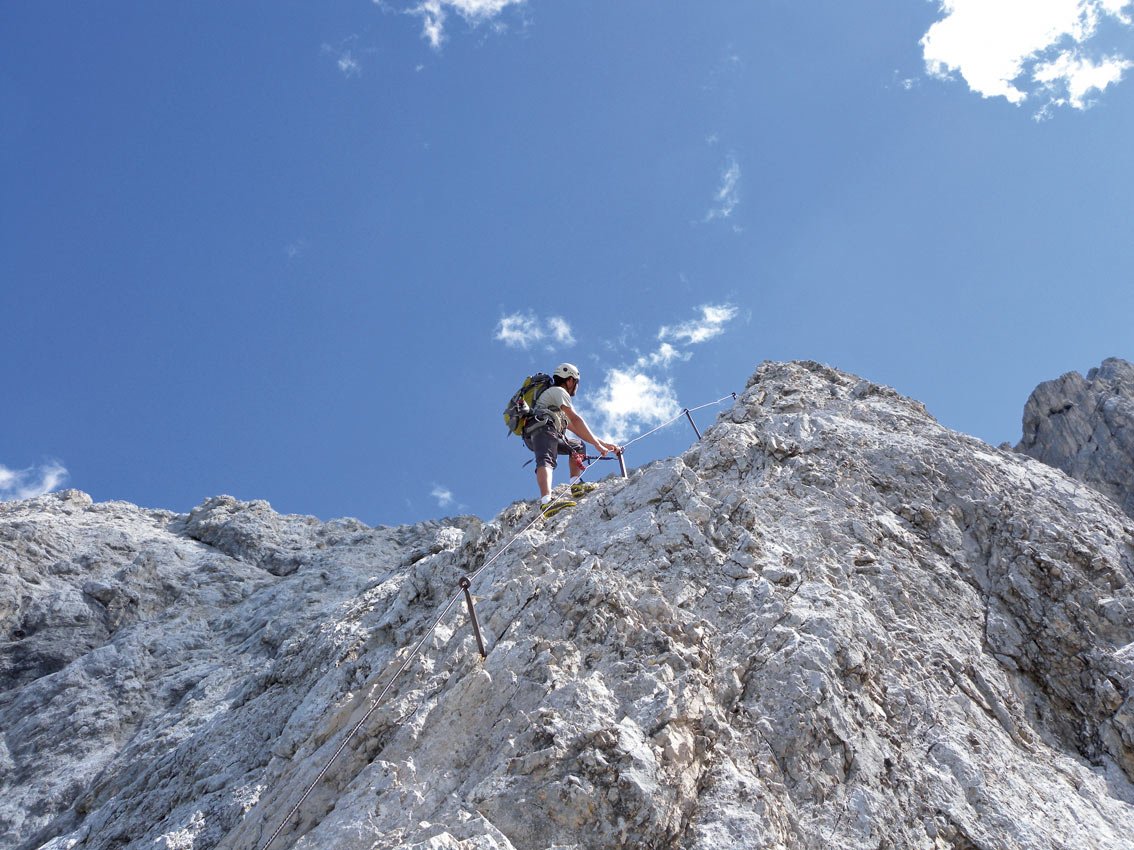 Klettersteigausrüstung; im Frühjahr evtl. Leichtsteigeisen/Pickel.