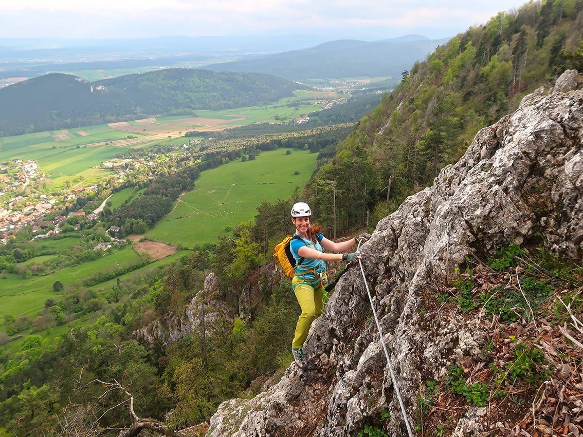 Gut mit Stahlseil, vielen Eisentritten und Strickleiter abgesichert.