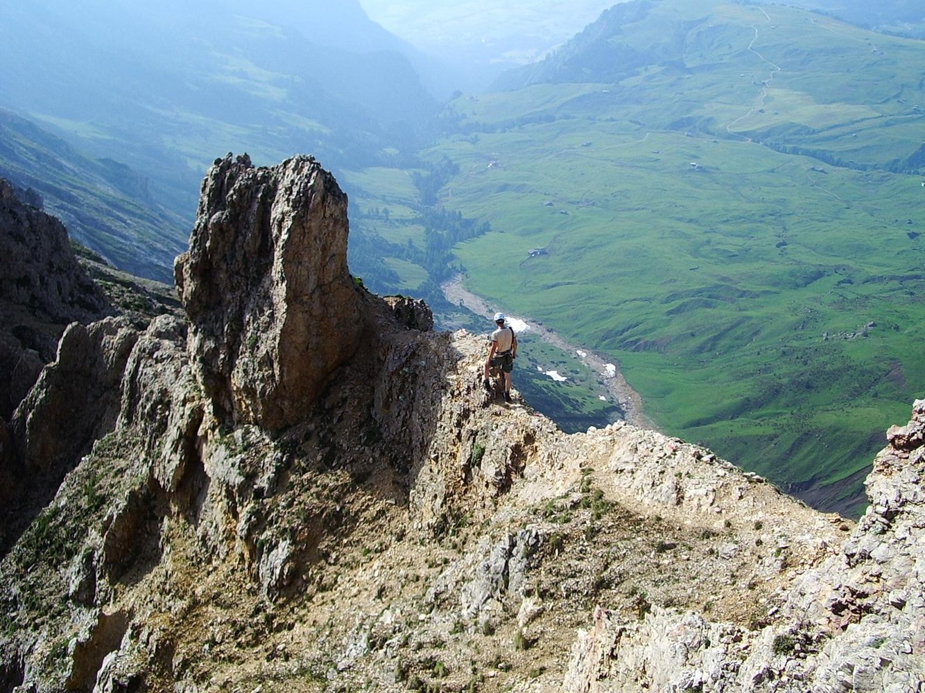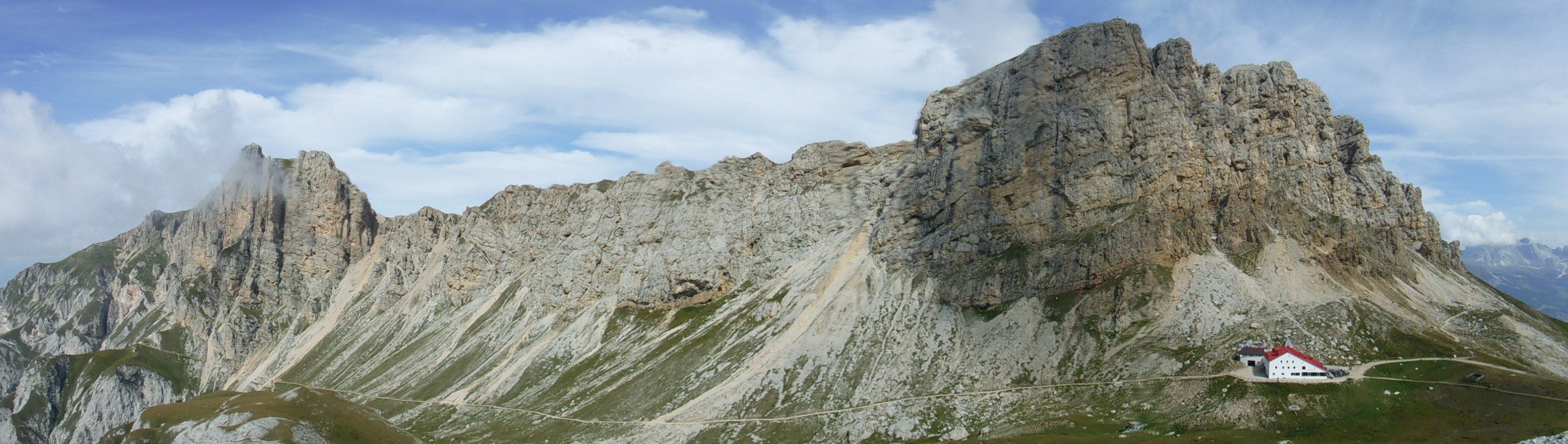 Mit dem Panorama-Sessellift zur Bergstation auffahren (zu Fuß 20 Min.). Auf dem Weg Nr. 2 über die Wiesen der Seiser Alm und einen steilen Hang hinauf zur Rosszahnscharte, 2499 m, und in wenigen Minuten zum Schutzhaus Tierser Alpl absteigen. (Die Hütte erreicht man auch von Tiers/St. Cyprian aus und aus dem Val Duron/Campitello di Fassa in jeweils 3 Std.) Von der Hütte in 10 Min. auf dem rot markierten Weg zur Südschlucht des Großen Rosszahns.